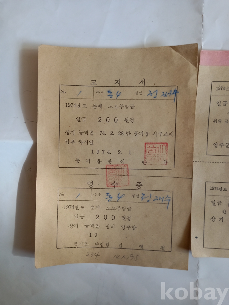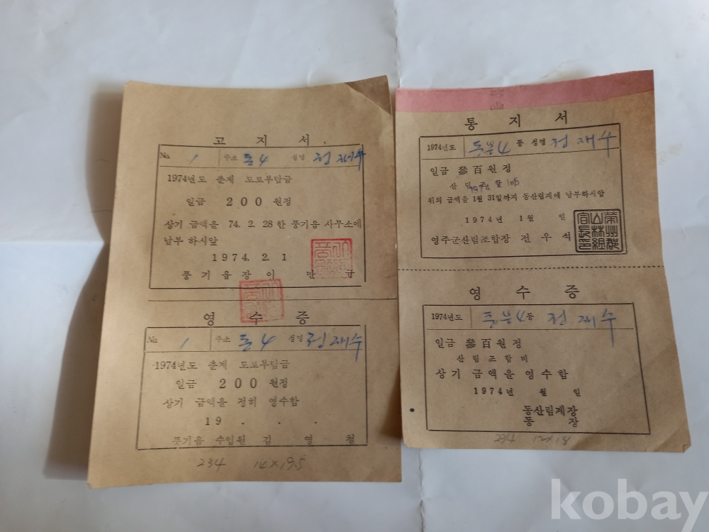 신 234) 고지서, 통지서 2장