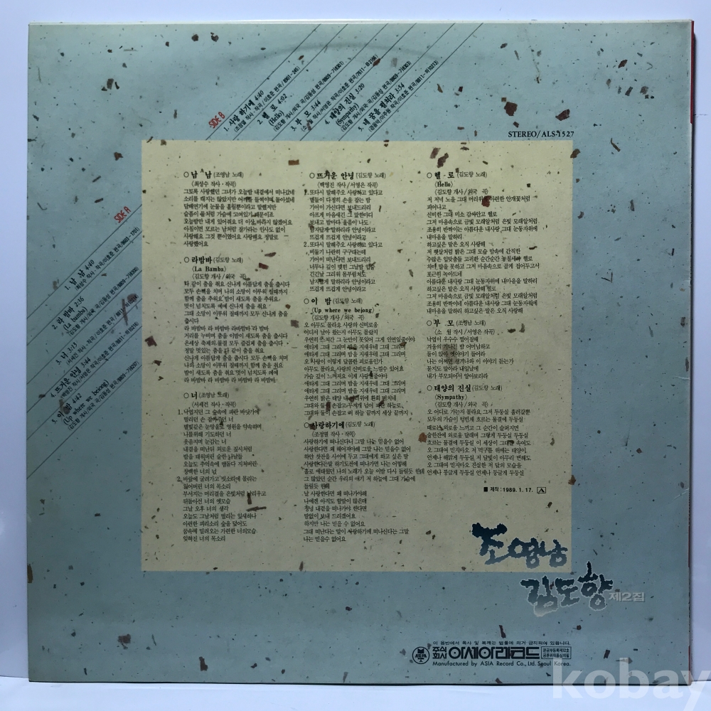 LP 35,950-9 조영남 김도향 제2집 - 남남/ 뜨거운 안녕 . 89 아세아 자켓 EX+ 알판 EX+