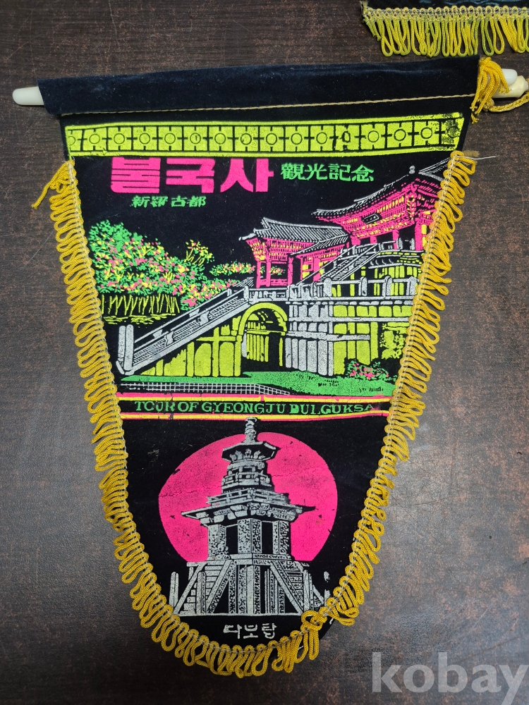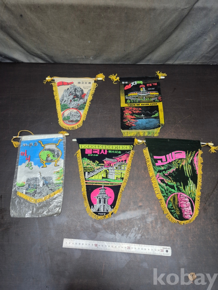 1970년대 관광기념 페넌트 부산 성지곡 고씨굴 불국사 마니산 설악산 관광기념품 페넌트 5점 일괄 22*29