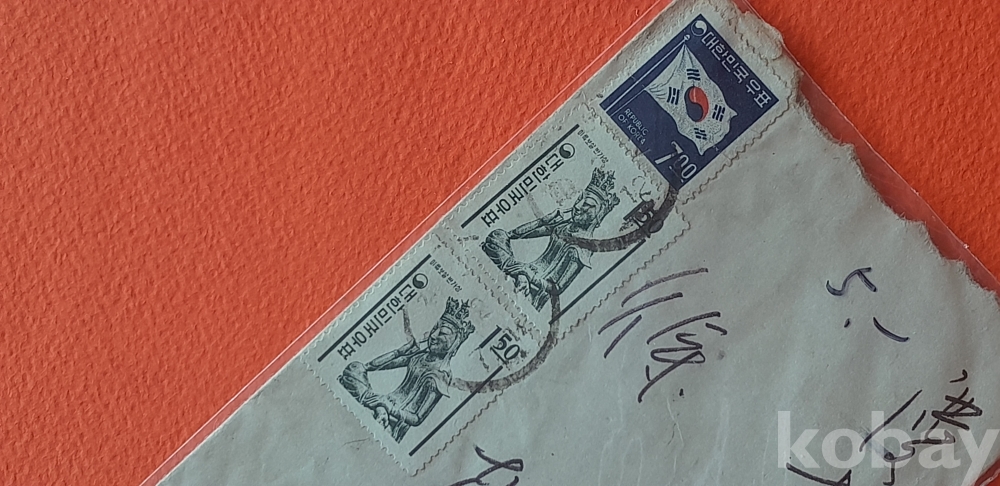 5원 어룡수병 우표 첩부(안성. 67. ?. 28) 등 실체봉피 2종 입니다.
