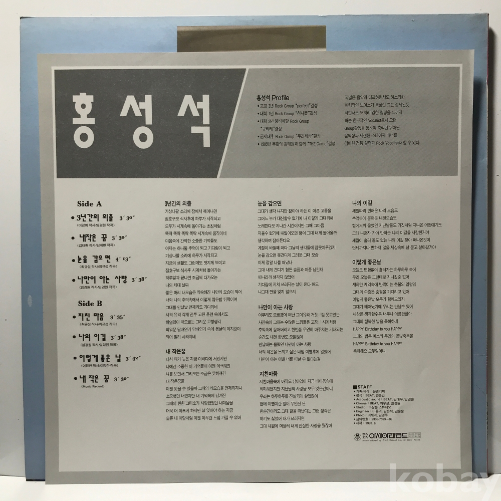 LP 83,770-57 홍성석 - 3년간의 외출/ 내작은 꿈 . 자켓 EX+ 알판 NM 93 년제작 국내반