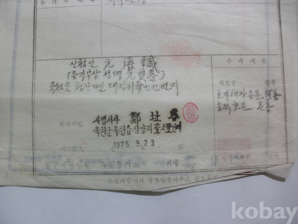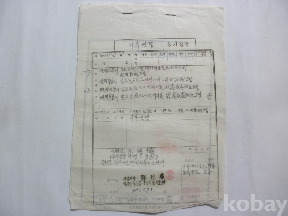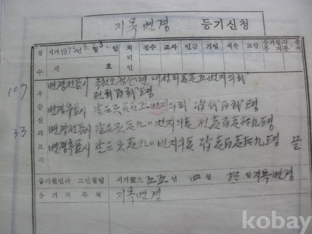 지목변경 등기신청 (옥천군 청산면 대성리, 1975)