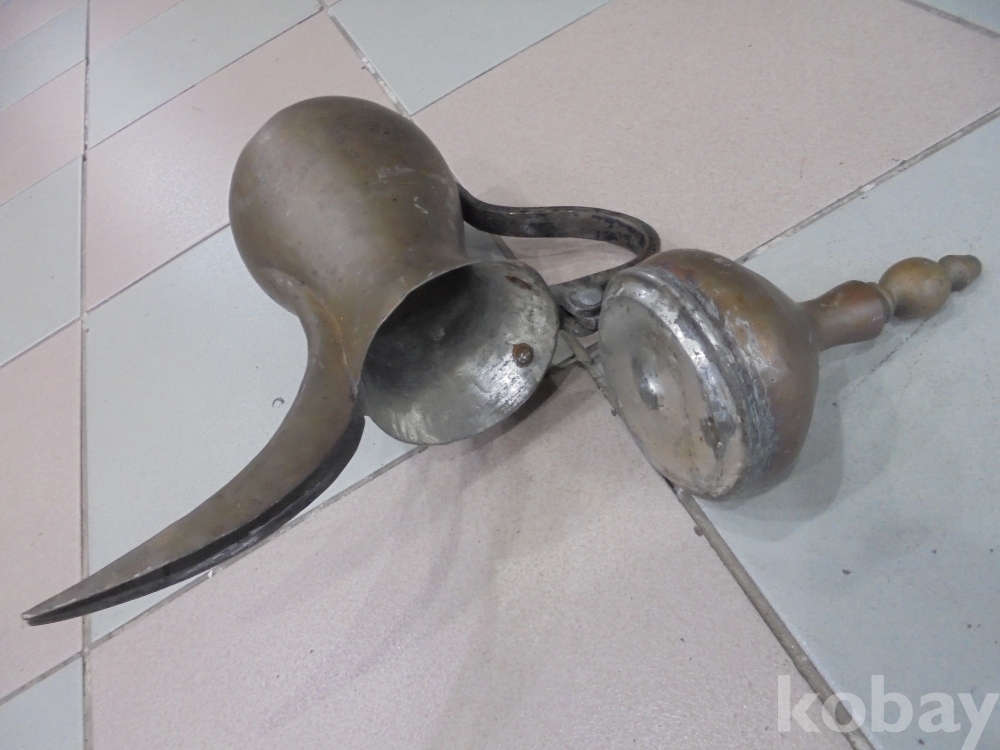 오래된 유기때물이 있으나 안에는특수칠하여 녹이없고 주자 손잡이 뚜껑이 예술적인 모양의 크고 무거운 오래된 유기찻물끓이던주전자