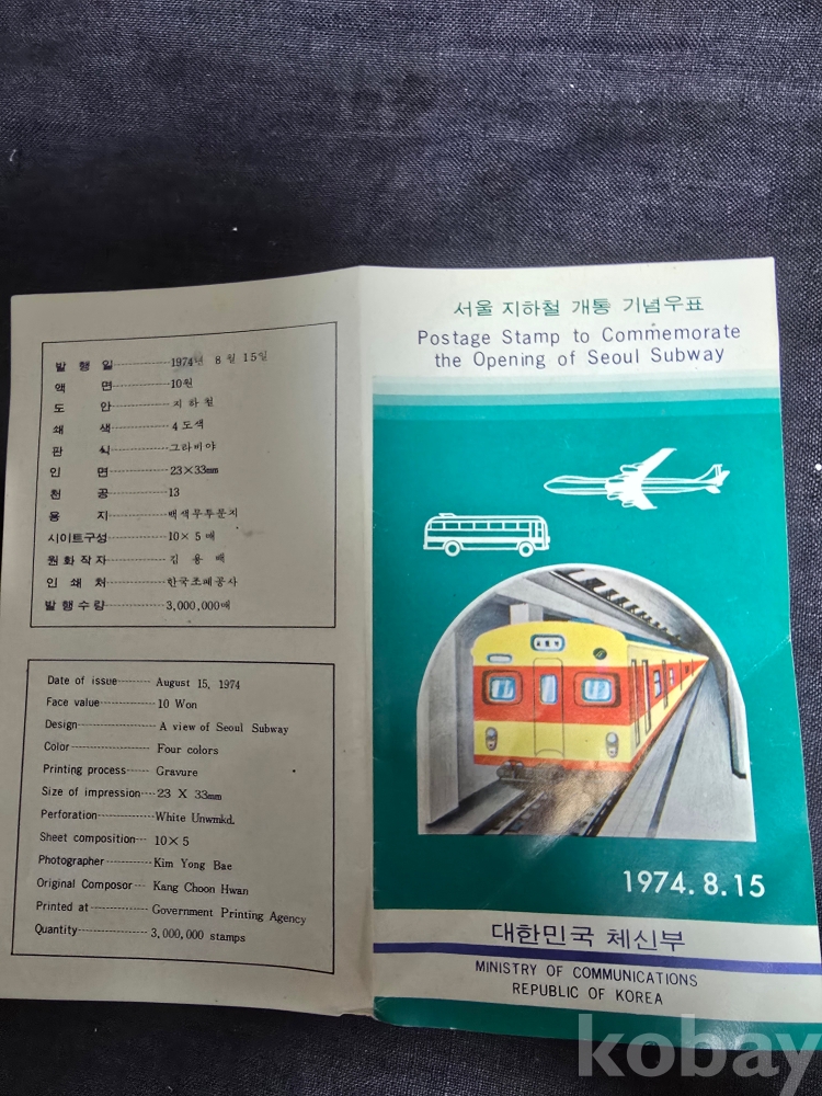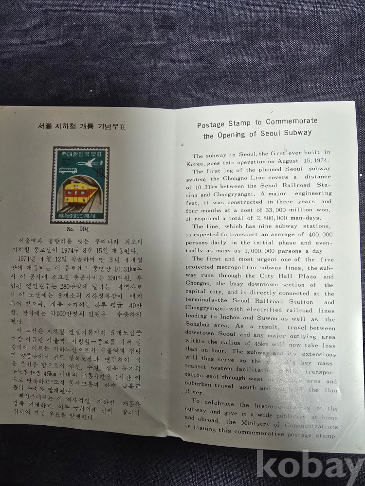 우표안내카드/74'8.15서울지하철개통기념 접힘 있슴