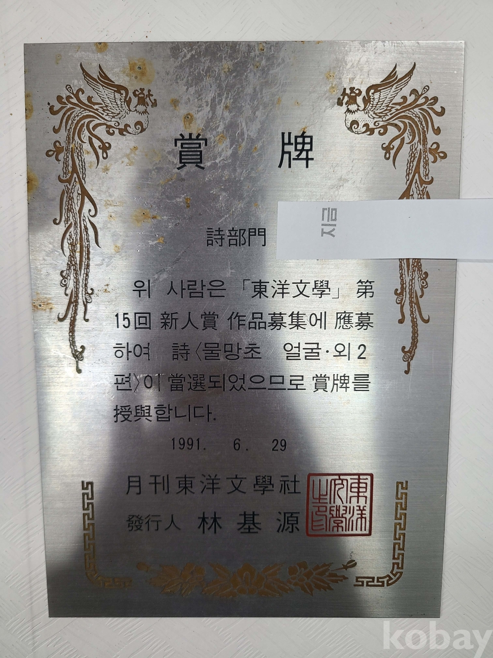 ▶자랑스러운 한국인상.월간동양문학사 상패(詩部門)