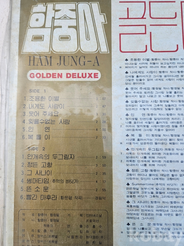 | 자켓상태 | EX : 약간의 마모, 모서리 찢김 존재 | 음반상태 | NM : 개봉했으나 미사용급, 스크래치 없음 | 발매정보 | 초반 | 가사지여부 | 무 |