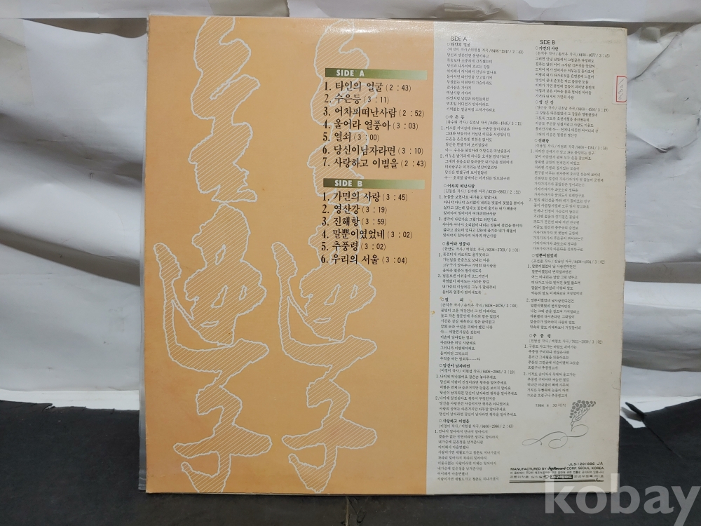| 자켓상태 | EX : 약간의 마모, 모서리 찢김 존재 | 음반상태 | EX : 재생에 영향 없는 가벼운 기스 존재 | 발매정보 | 알수없음 | 가사지여부 | 무 |