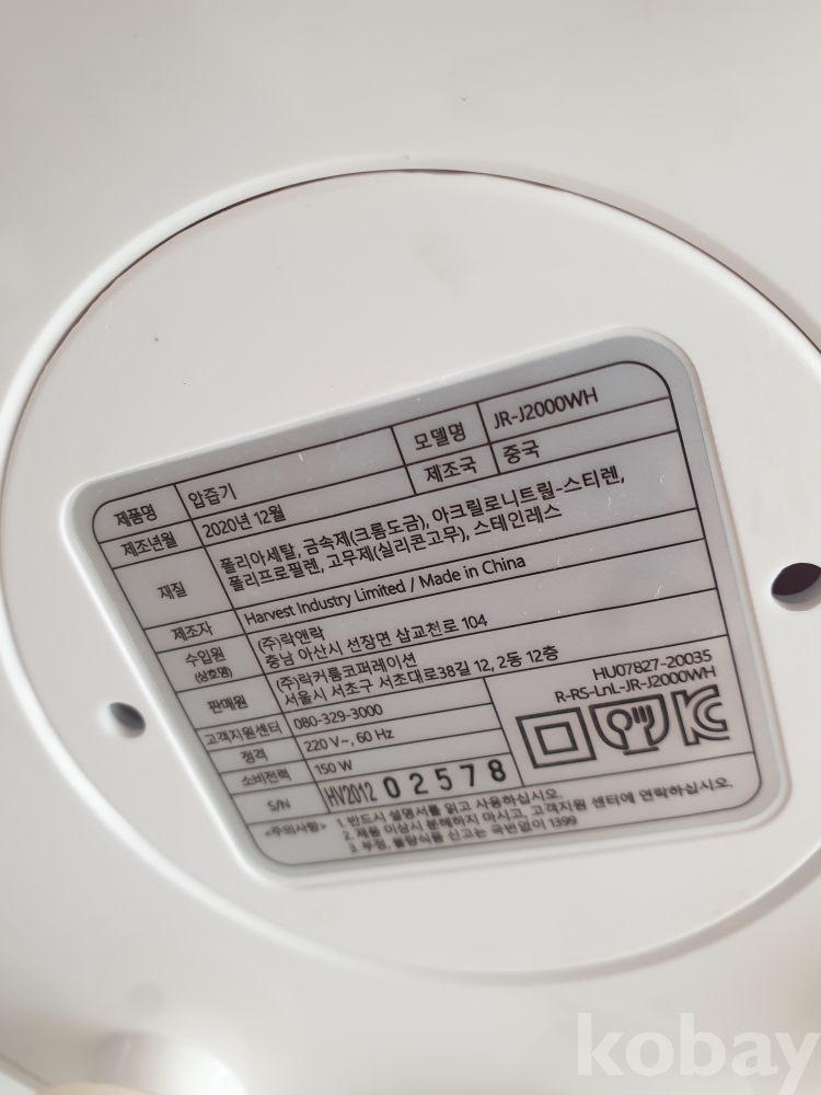 [천원경매] 11-515 제니퍼룸 착즙기(상태 깨끗함, 단독배송, 묶음배송불가)