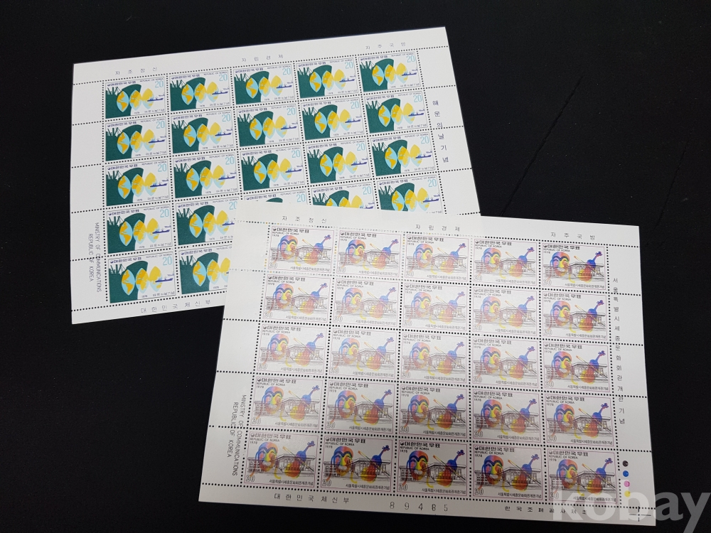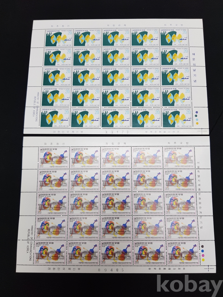 - 미사용 1977년 해운의 날 기념 등 미사용 전지 세트 2종 모음