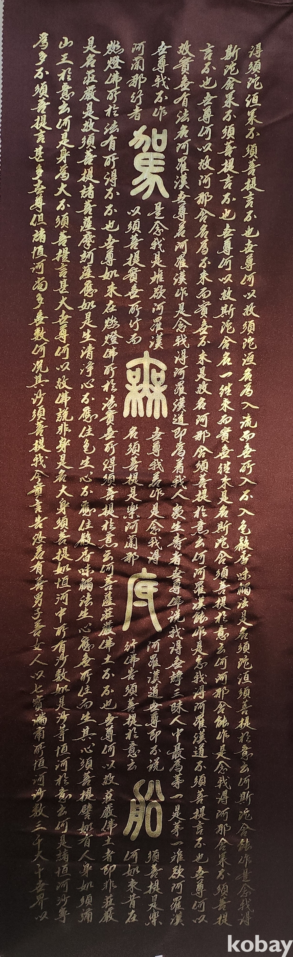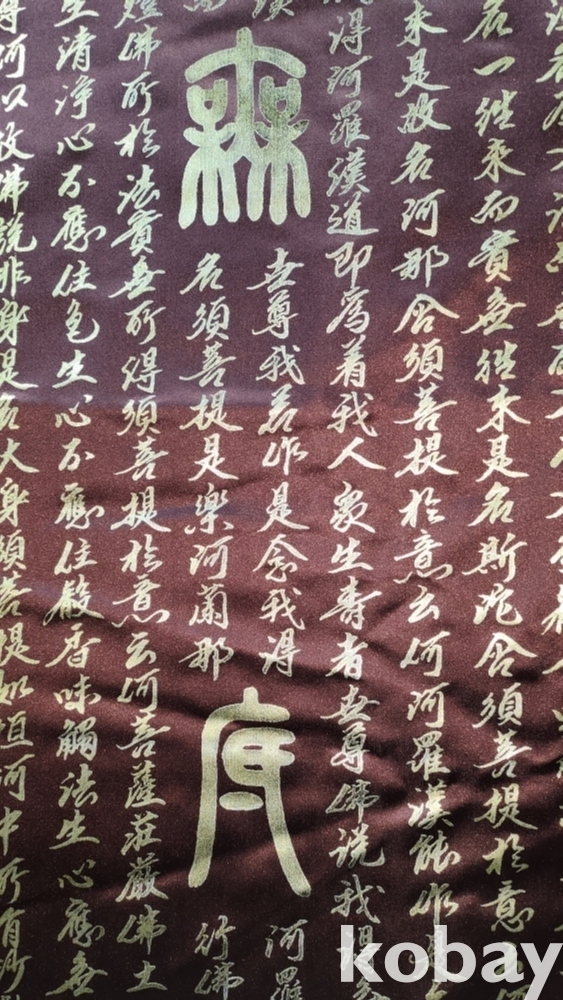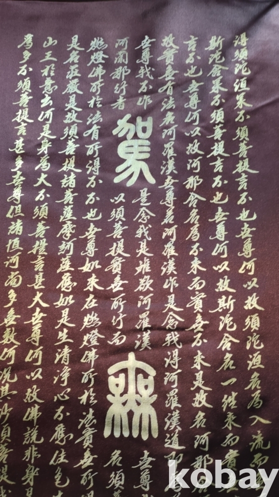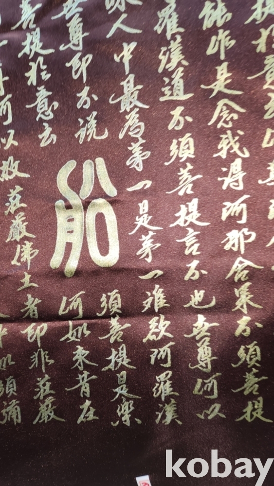 베바닥에 금채로 쓴 서예입니다,