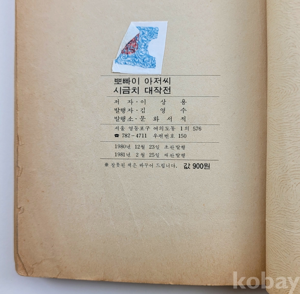물 품 명 | 박수동 / 뽀빠이아저씨 : 시금치 대작전 / 1981년 / 문화서적 |