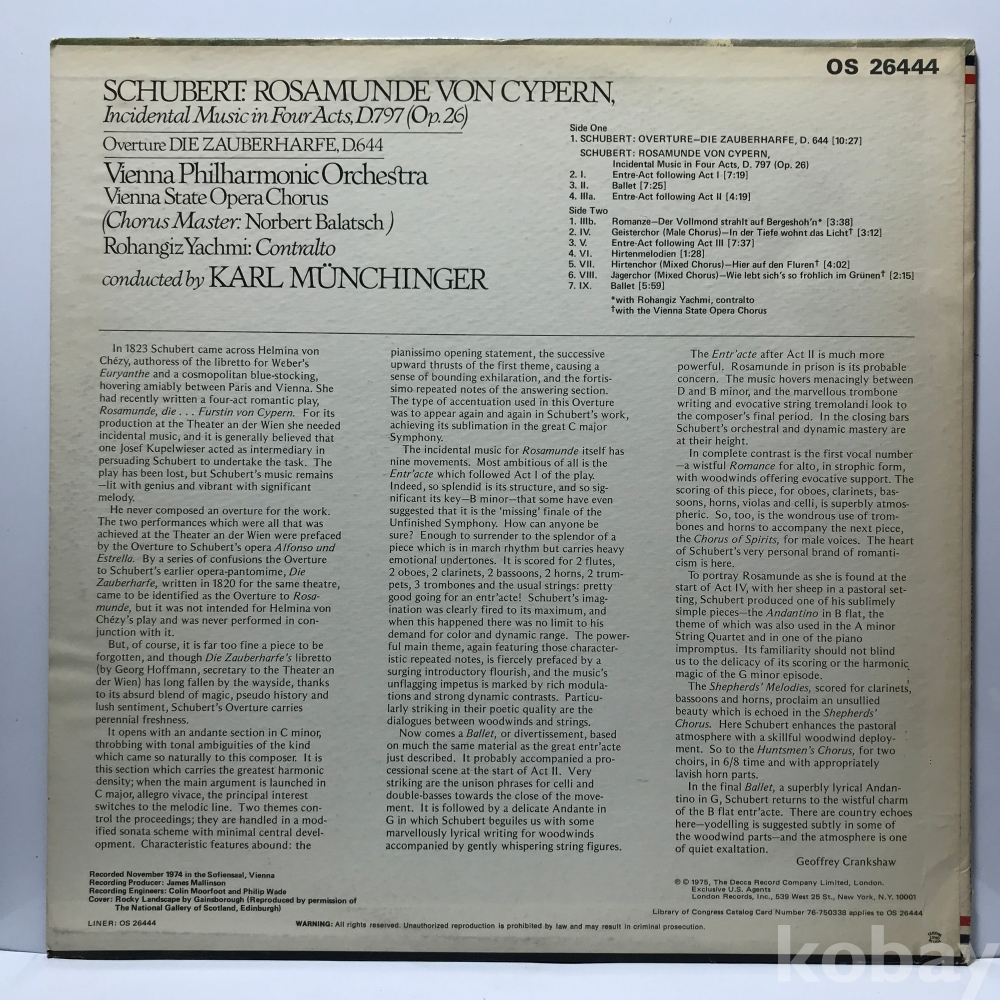 LP 84,020-36 SCHUBERT Rosamunde Incidental music -Vienna Philharmonic Or -KARL MÜNCHINGER . 자켓 EX 알판 EX+ 75 년제작 수입반