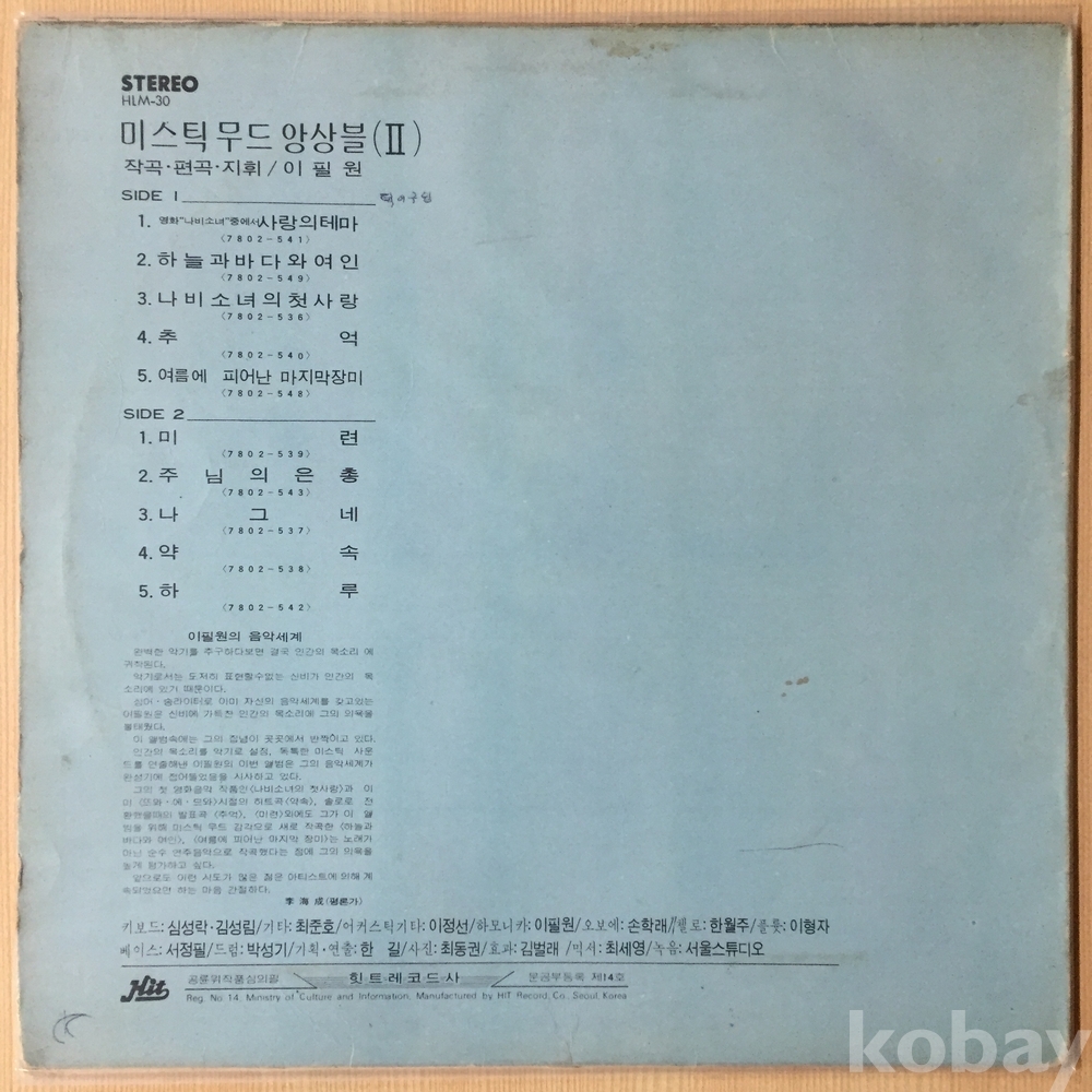 ⊙ 1978년 / 힛트레코드 – HLM-30 / 작곡/편곡/지휘 - 이필원