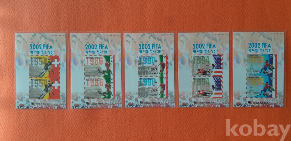 2002 FIFA 월드컵(2001년 발행) 소형시트 5종 세트 입니다.