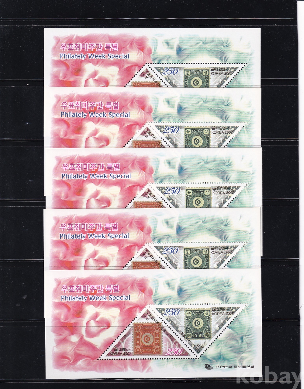 - 미사용 2007년 우표취미주간 250원 시트 5장 일괄