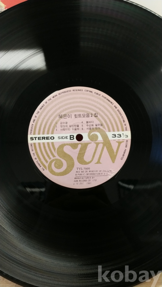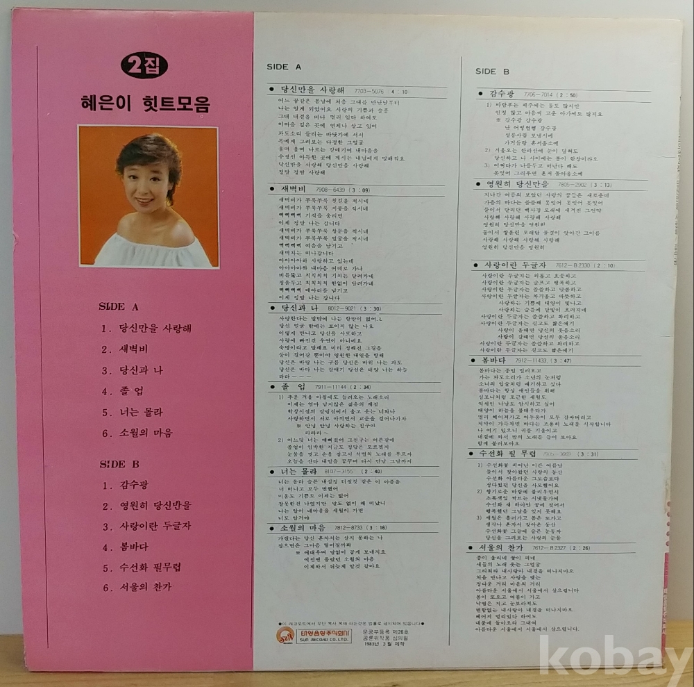 혜은이 힛트모음 2집 (당신만을 사랑해 / 감수광) 1981년 태양음향