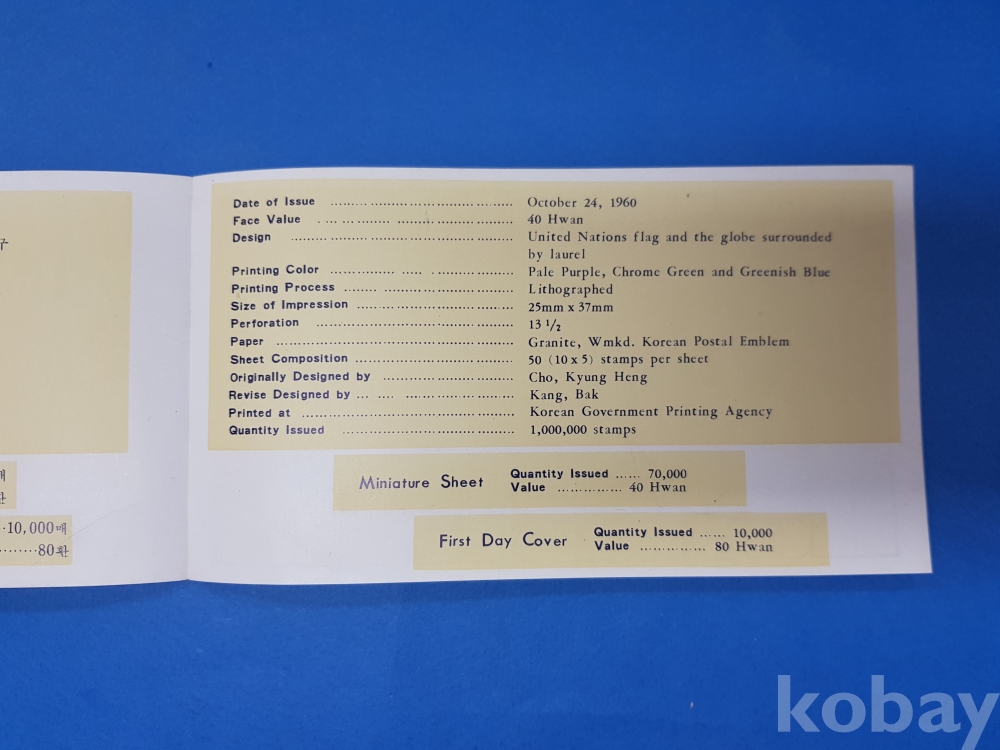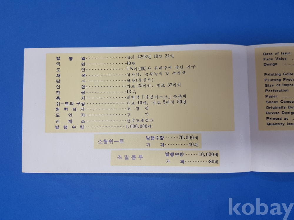 **** UN 창설제15주년 기념우표/4293.10.24/대한민국 체신부