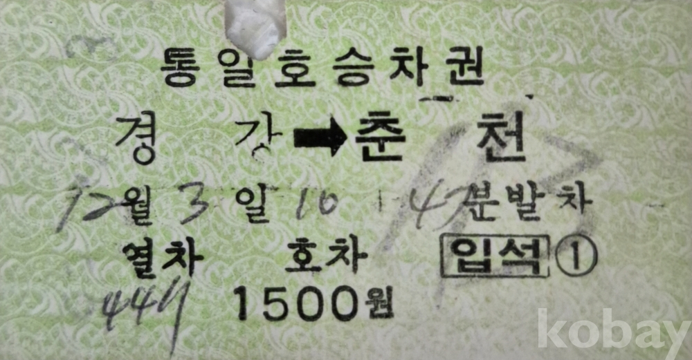 통일호 국유철도 승차권 경강-춘천 일반입니다.