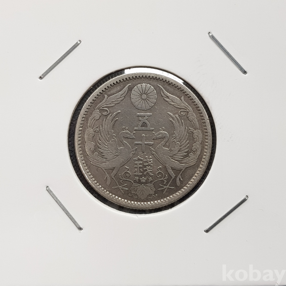 - 진품 일본 은화 - 대정(다이쇼) 13년(1924년) 오십전 욱일 은화