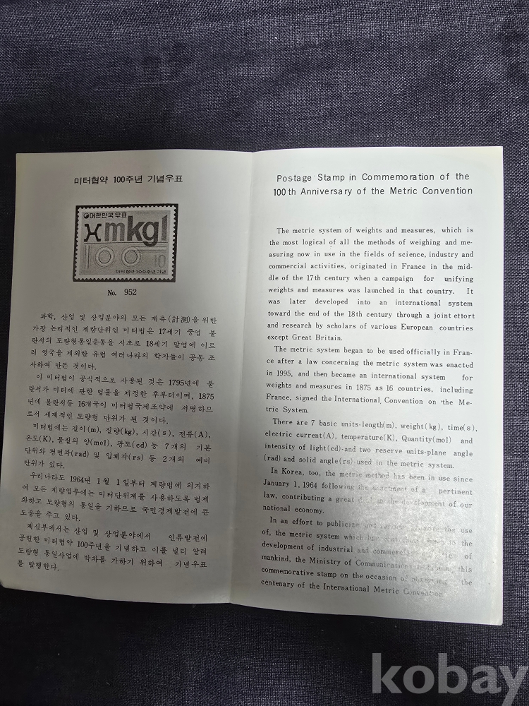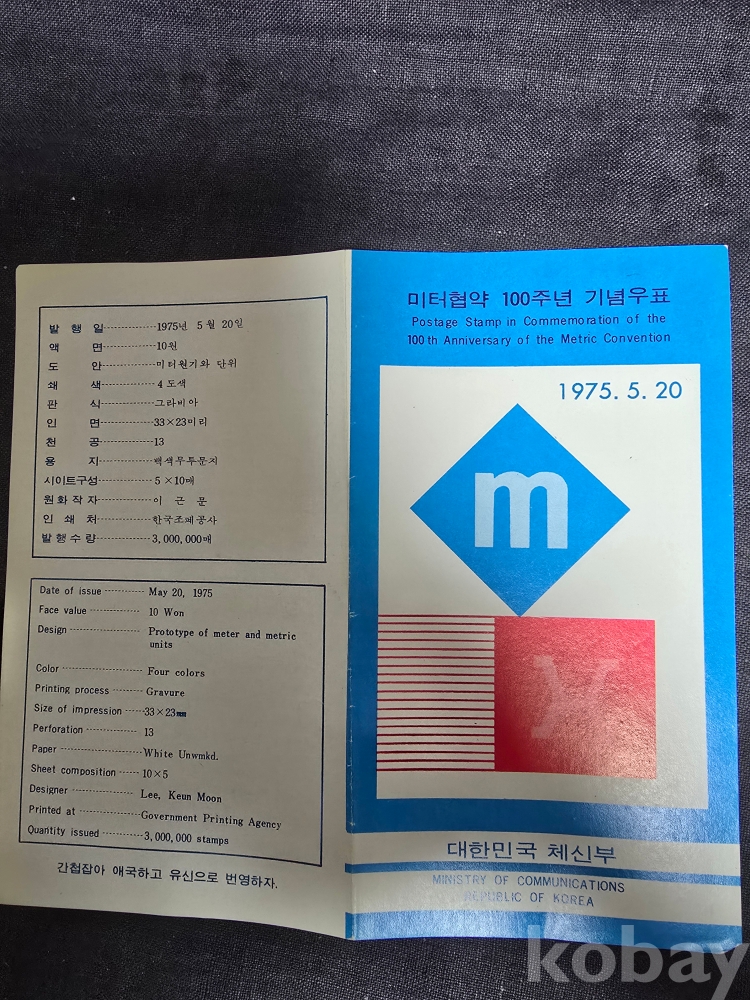 우표안내카드/75'5.20미터협약100주년기념 접힘 있슴