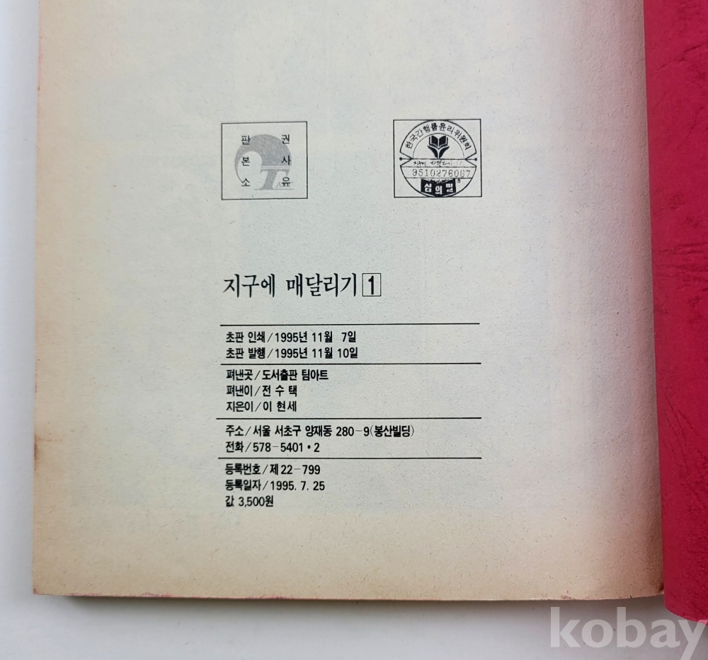 물 품 명 | 이현세 / 지구에 매달리기 1~4완결 총4권 / 1995년 초판 / 팀아트 |
