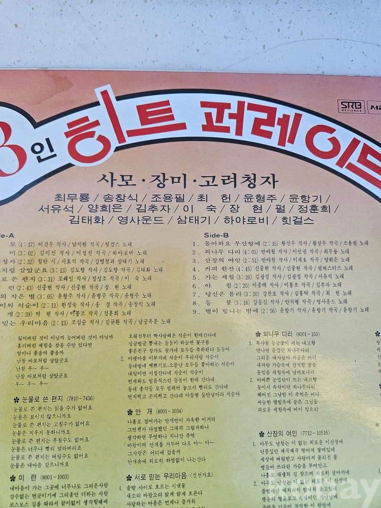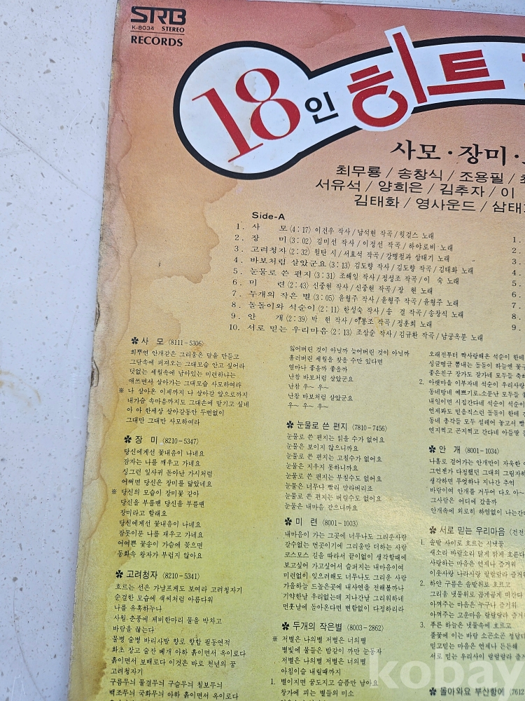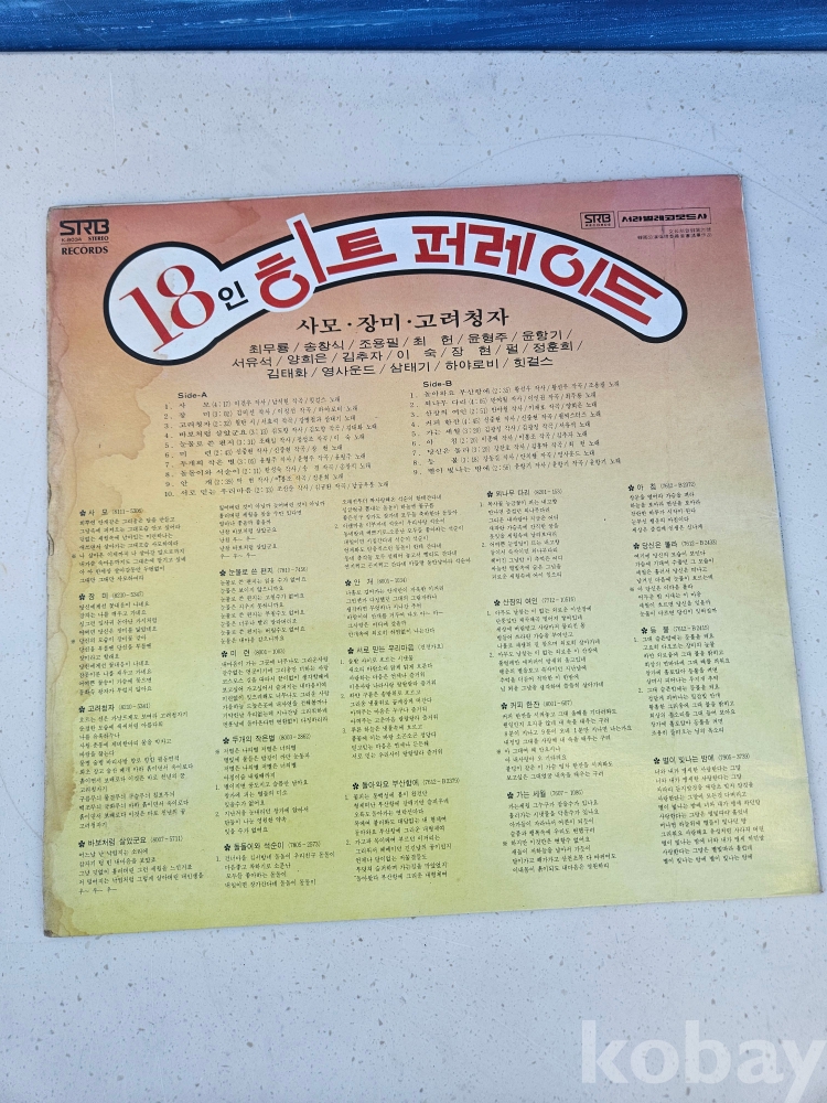 | 자켓상태 | VG : 주름, 접힘, 모서리 찢김 다수 | 음반상태 | EX : 재생에 영향 없는 가벼운 기스 존재 | 발매정보 | 초반 | 가사지여부 | 무 |