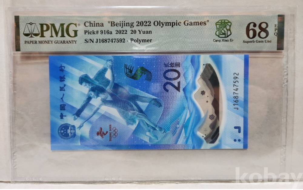 -2022년 중국 동계올림픽 기념 지폐 PMG68 고등급 입니다.