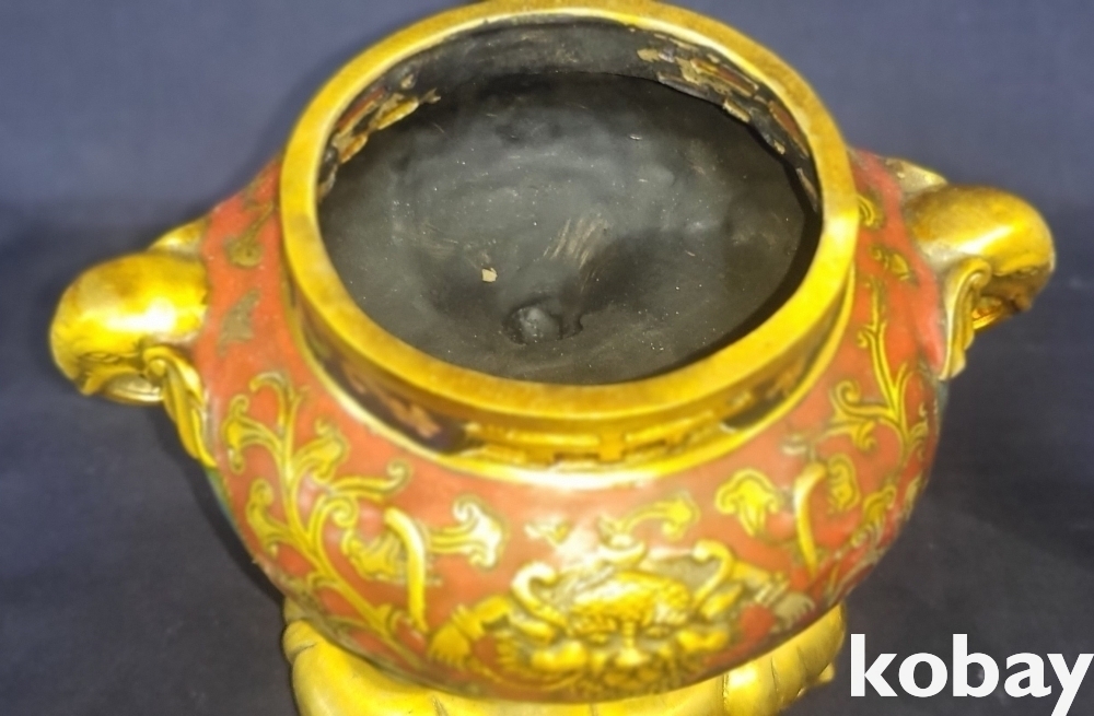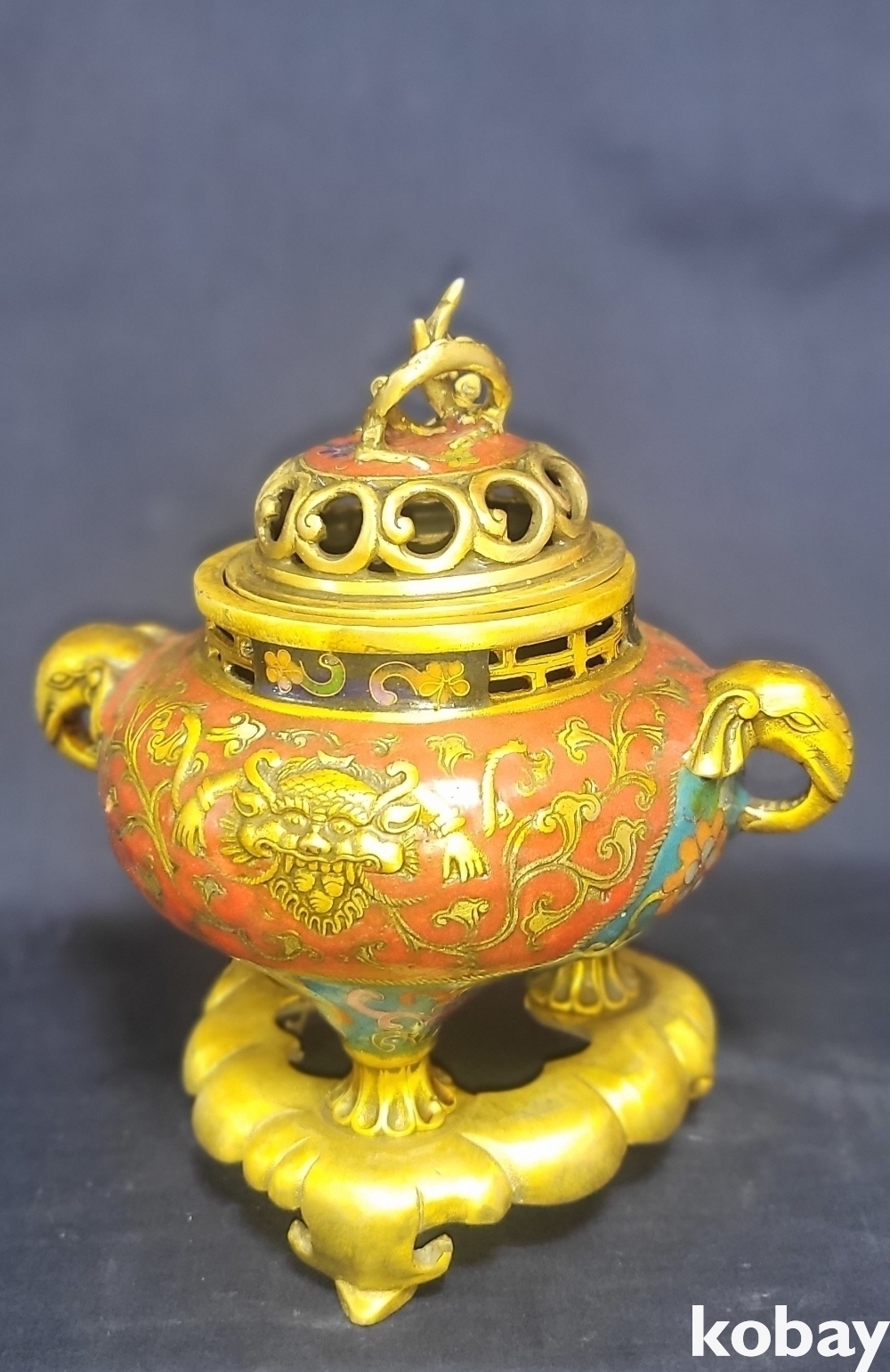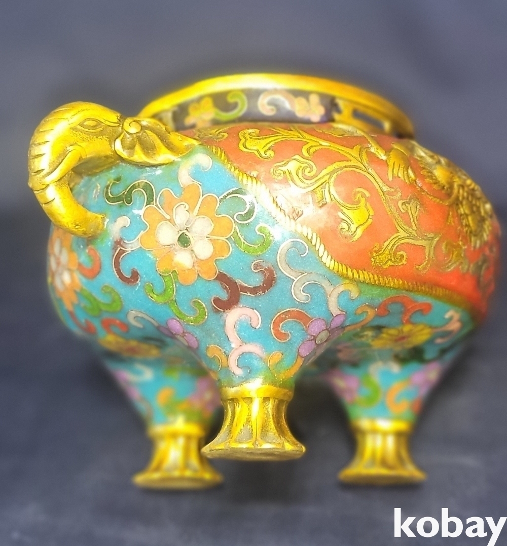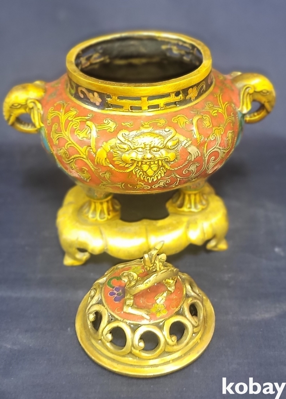 대청건륭 관지 보이는 동태 범랑 화훼 용(龍) 상이(象耳) 3단 분리형 향로입니다,
