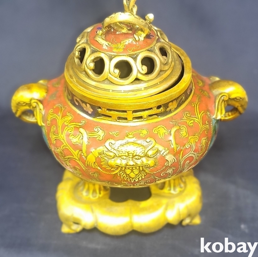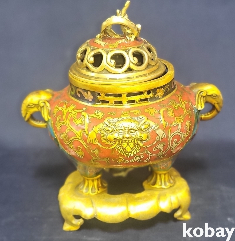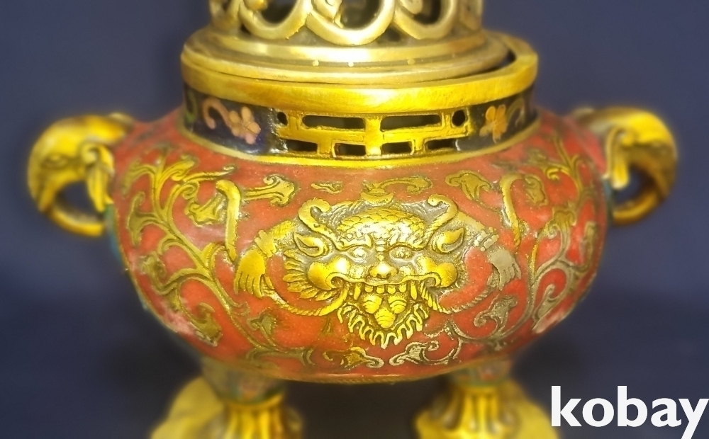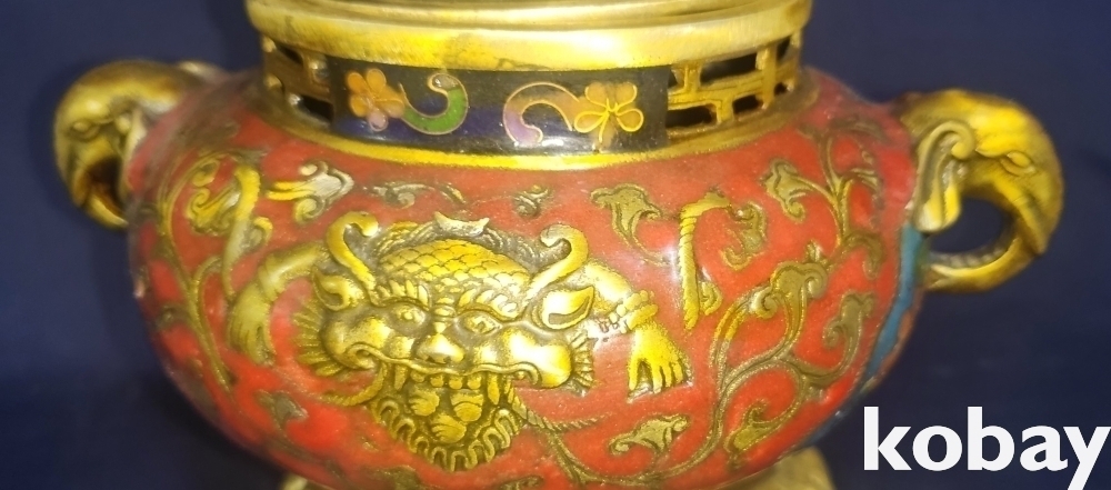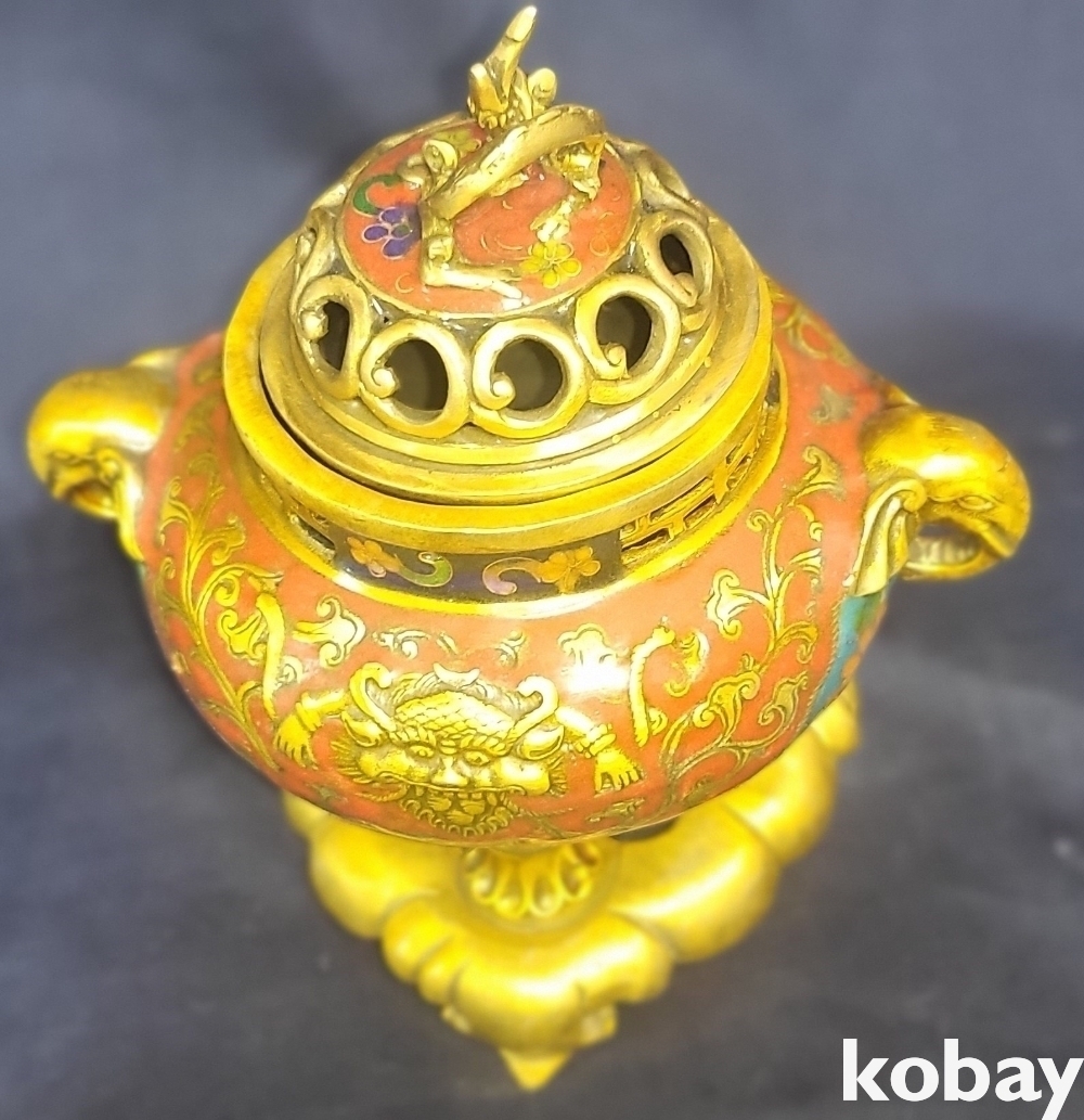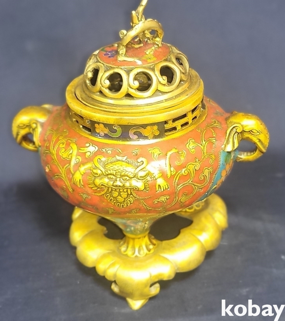 대청건륭 관지 보이는 동태 범랑 화훼 용(龍) 상이(象耳) 3단 분리형 향로입니다,