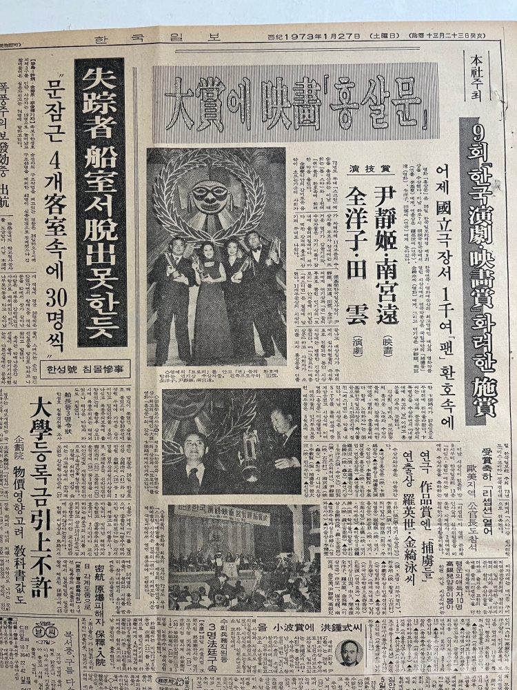 뒷면 영화 홍살문의 수상소식 관련한 기사와 사진 있습니다.