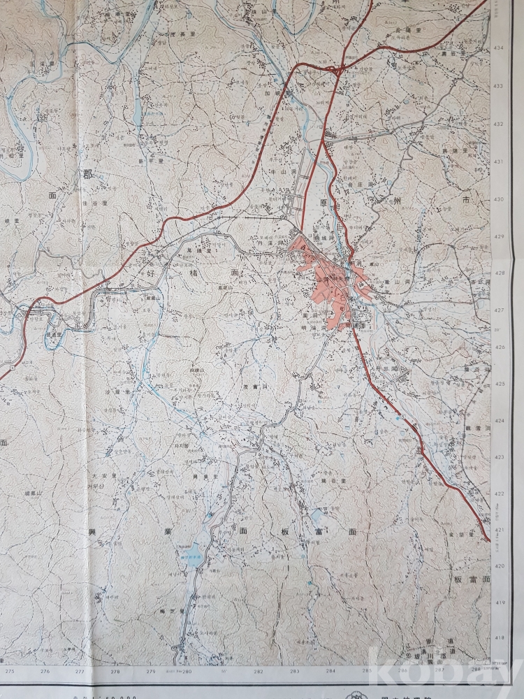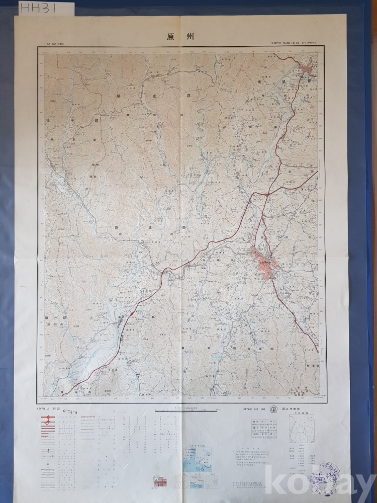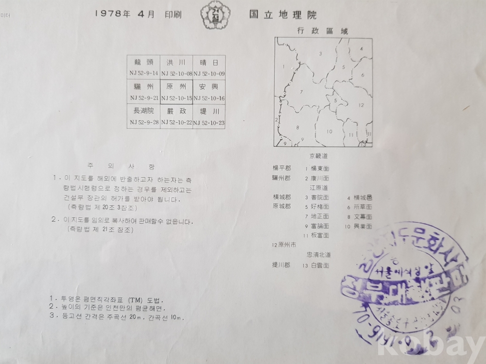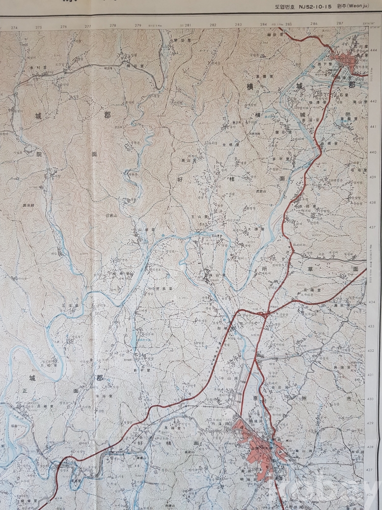 1974년 1:50,000 지도 (원주) 양평군, 여주군, 횡성군, 원성군, 원주군, 제천군 수록