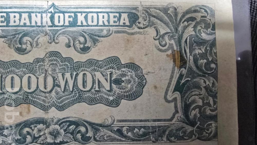 디자인 특징: 중앙 하단에 위치한 초대 대통령 이승만 박사의 초상과, 한자로 표기된 '천원(千圓)' 액면가가 당시의 시대상을 생생하게 보여줍니다.