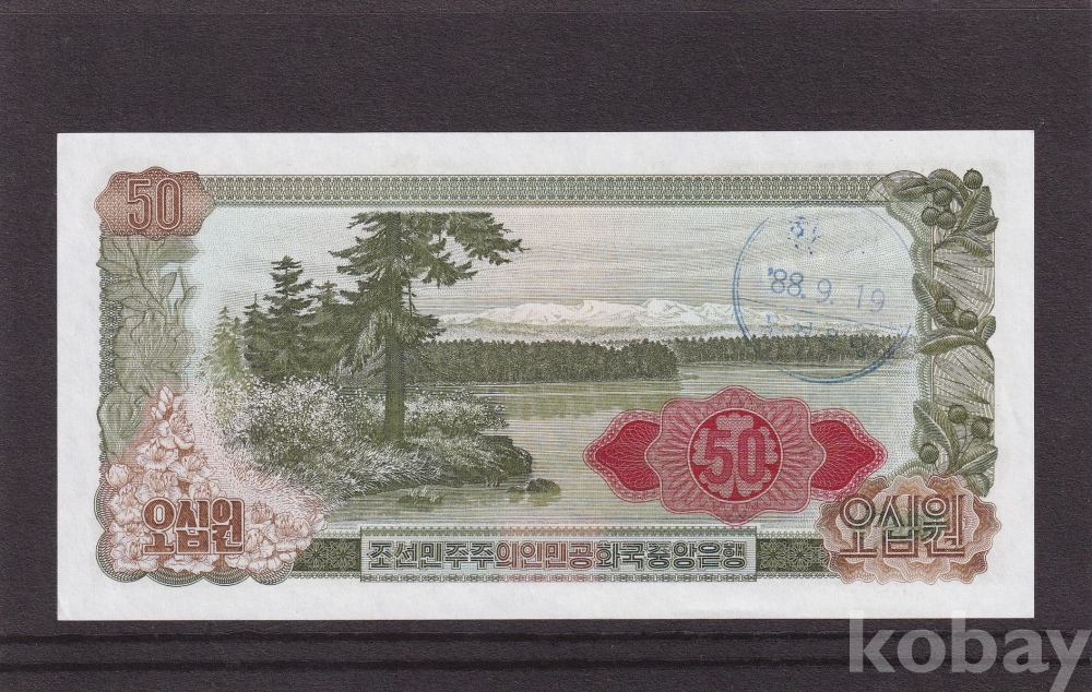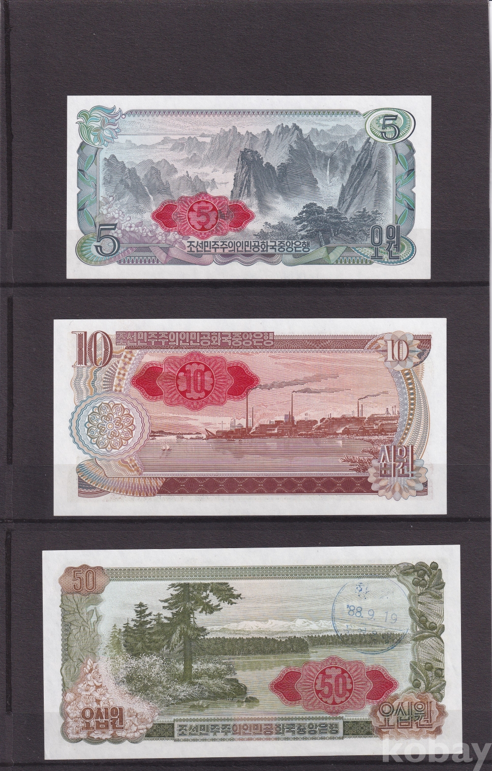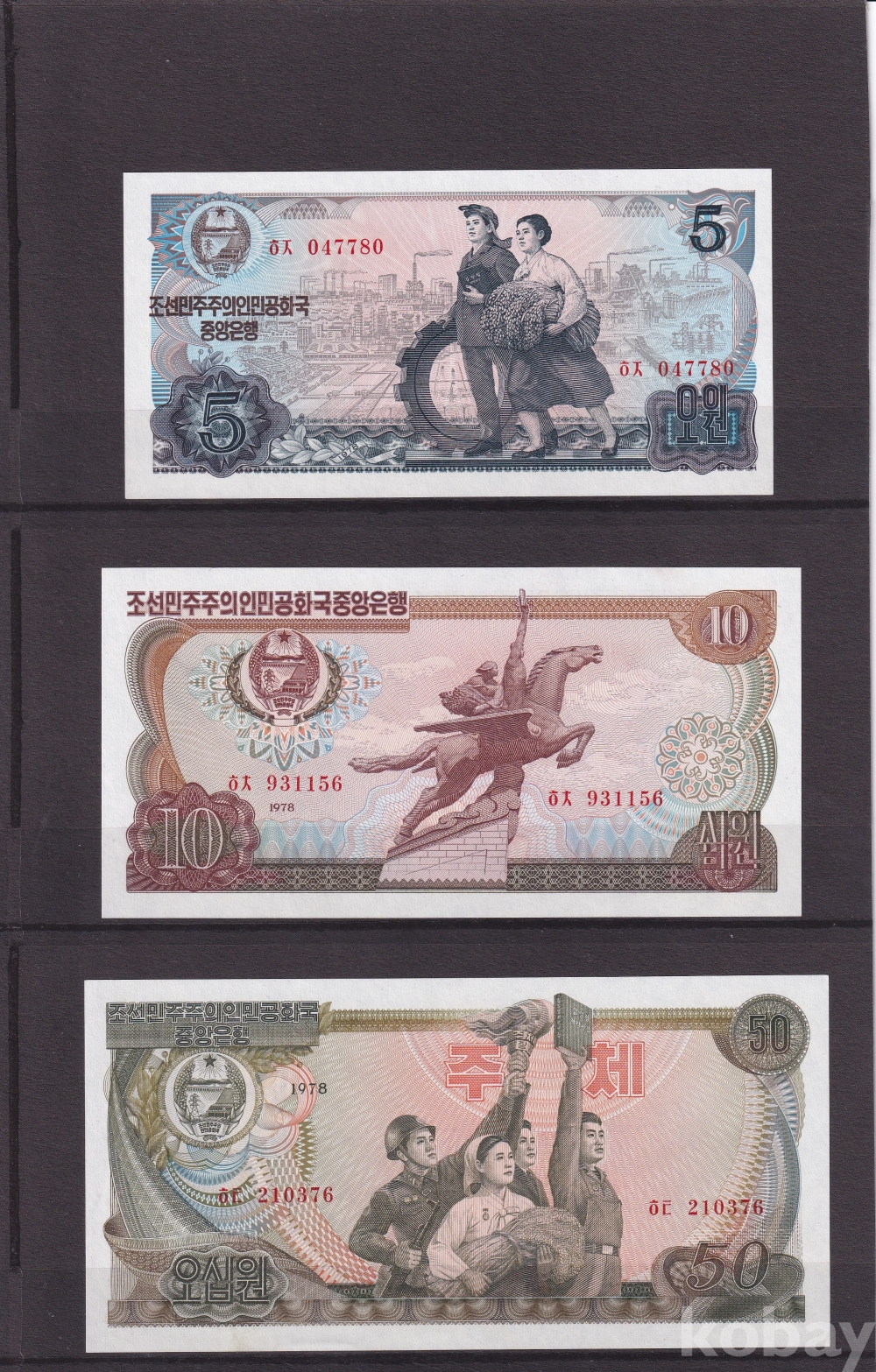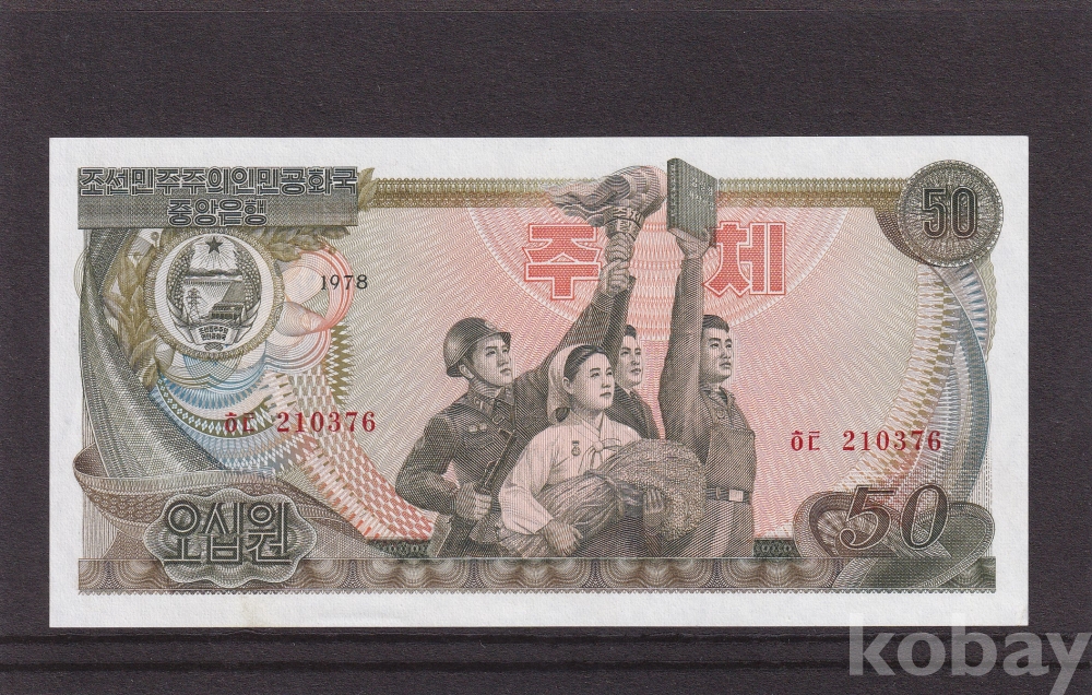 - 북한에서 1978년 발행된 1원/ 5원/10원/50원 지폐 4종에 외화와 바꾼돈/액면금액을 지폐에 가쇄를 하여 외화와 바꾼 돈표로 발행하였습니다.