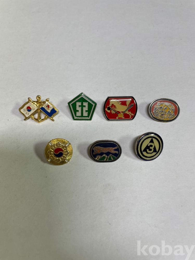 한국군 뱃지 7종 (뒷꽂이 없음)