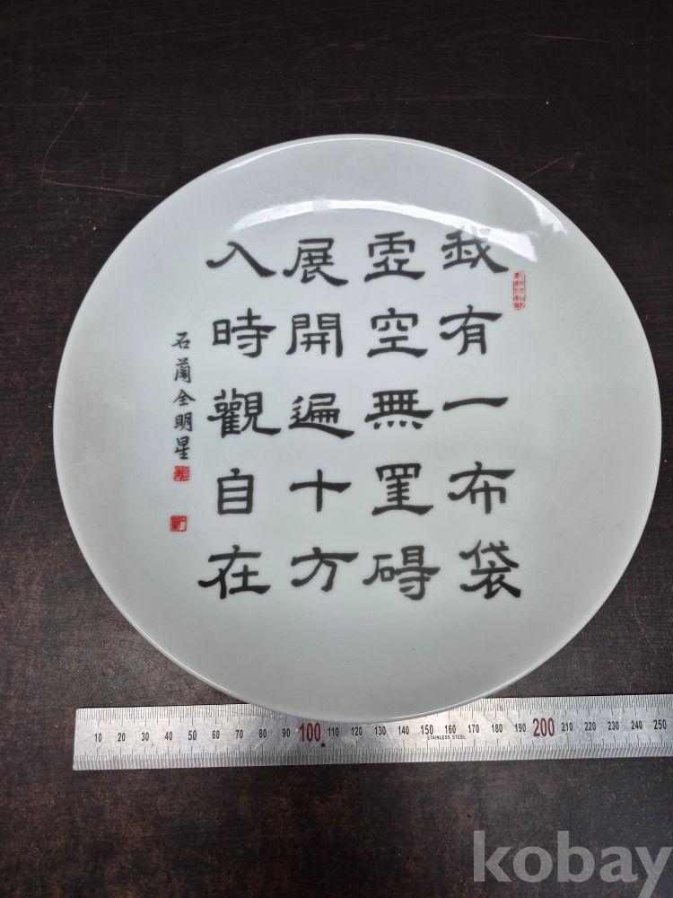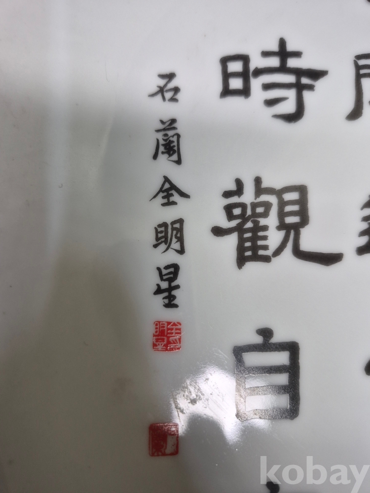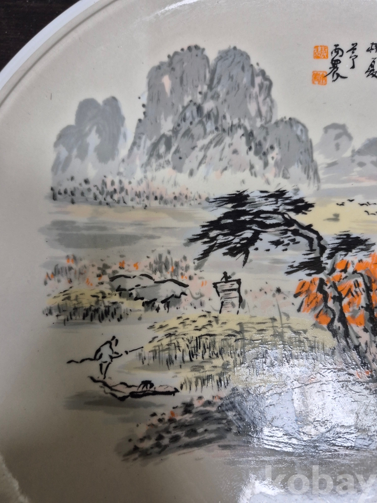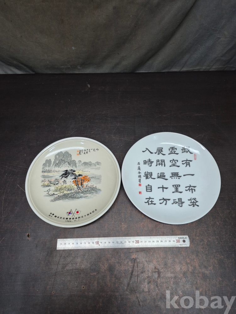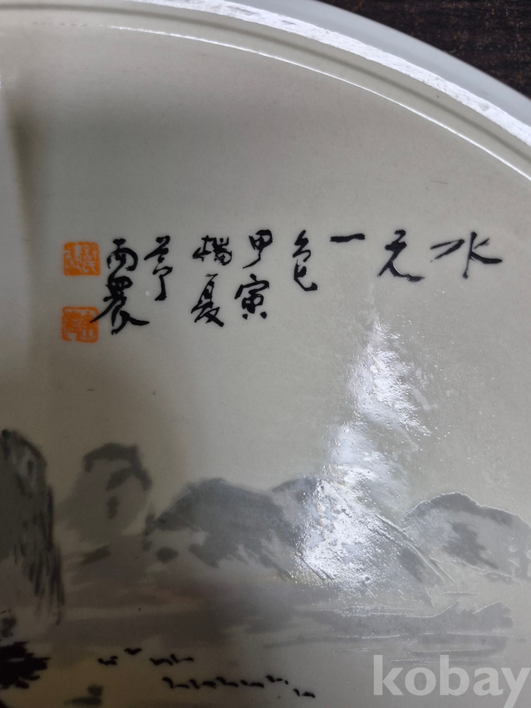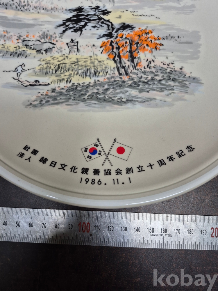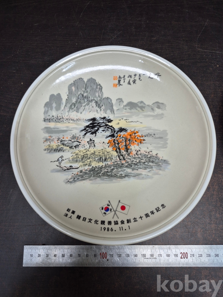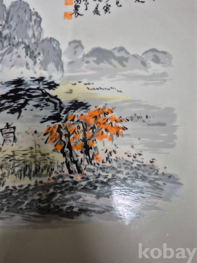 1986년대 남농작 진경산수화가 그려진 작품도자기 한일문화친선협회 설립10주년기념 석농 전명성님 작품글 한점 일괄