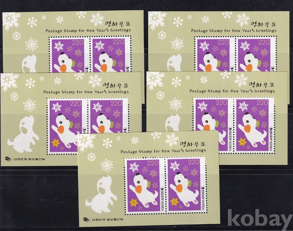 - 미사용 2006년용 연하우표 시트 5장 모음 - 2005년 발행