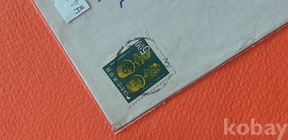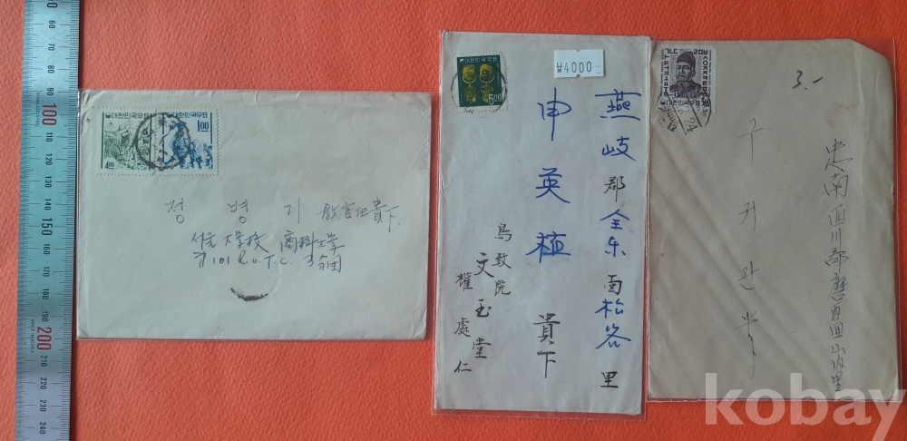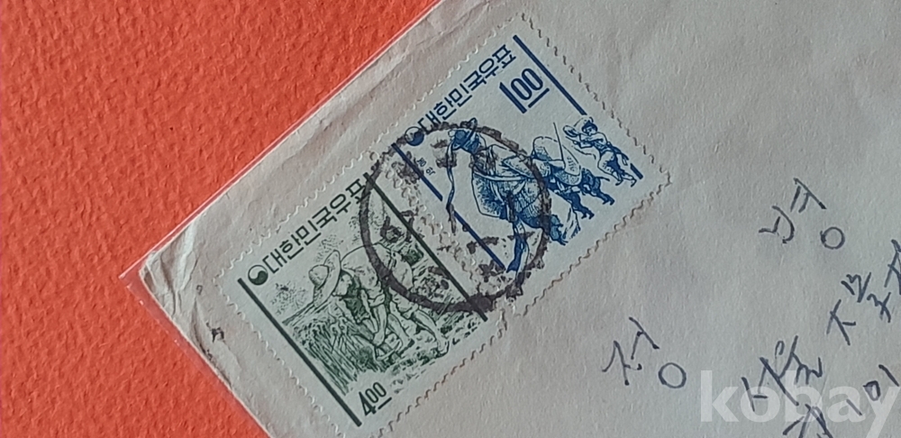 4원 농부, 1원 농악 우표 첩부(?, 67 1. 4), 5원 귀거리 우표 첩부(?, 69. 12. 23) 포함