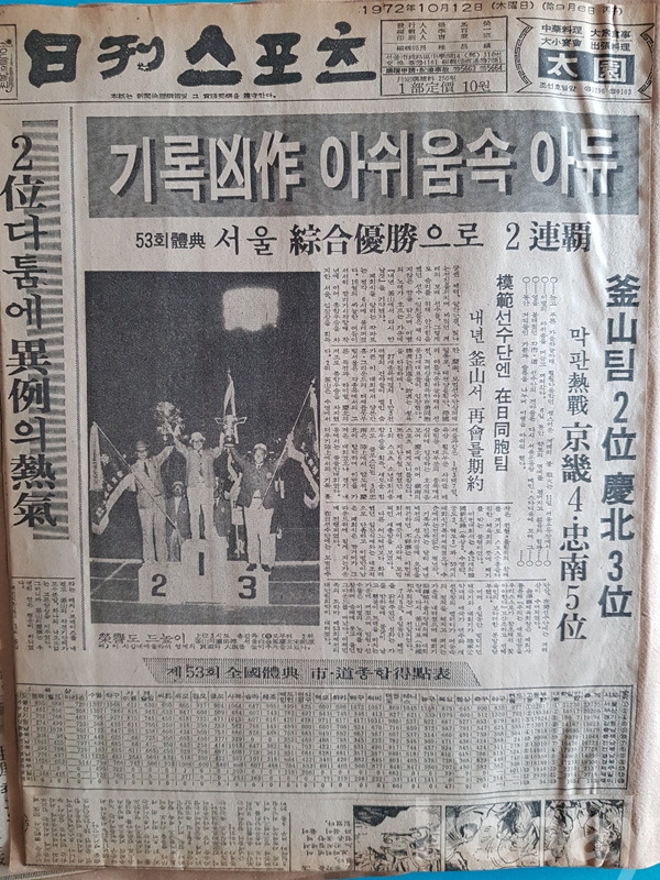 1972년 제53회 전국체육대회 관련자료 (신문스크랩 등)