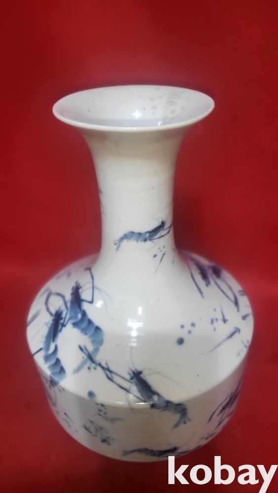 대청광서연제(1875ㅡ1908) 청화백자 새우도 문양 광구병입니다,