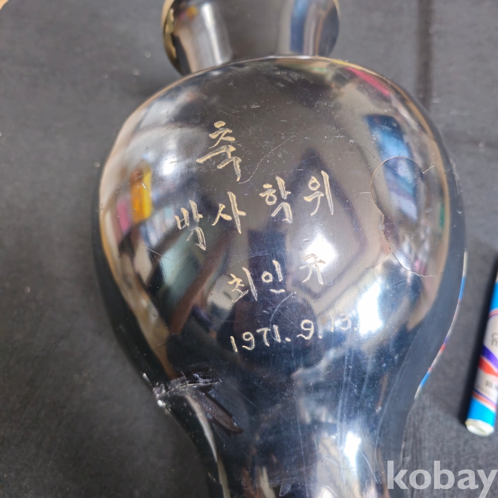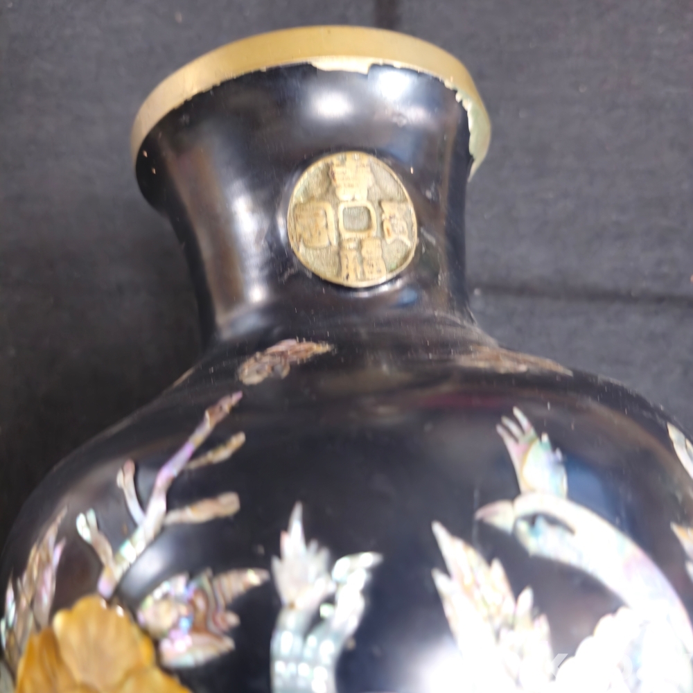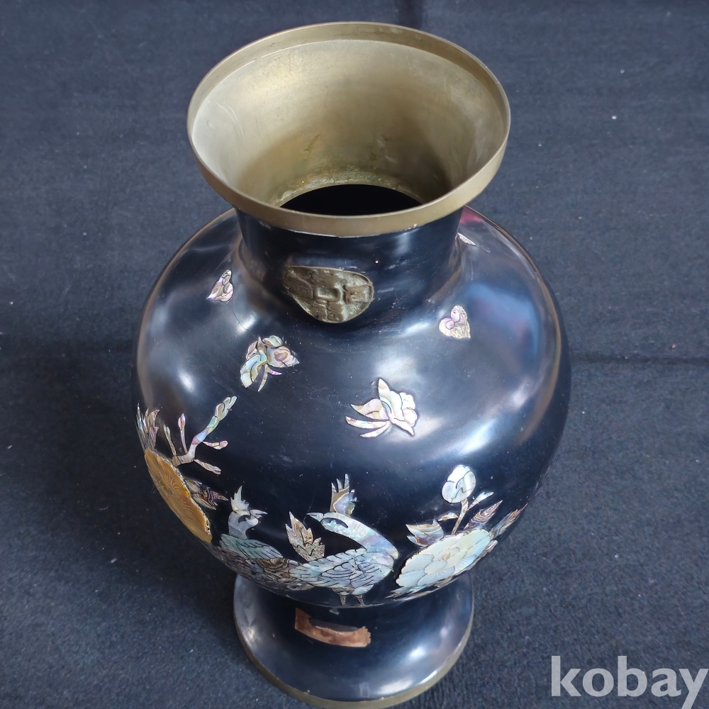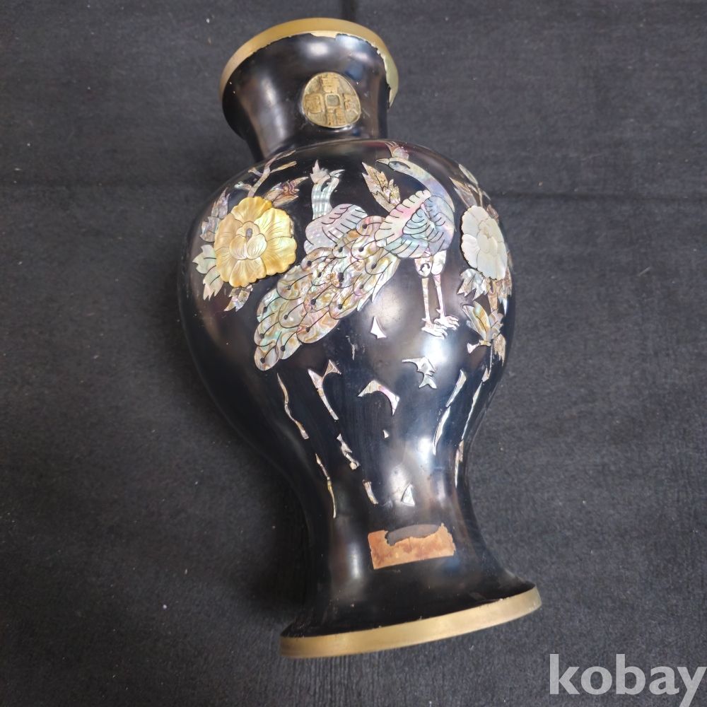 (((근현대사자료/자개화병))) 1971년 꽃과 공작새와나비가 자개로 박힌 자개화병