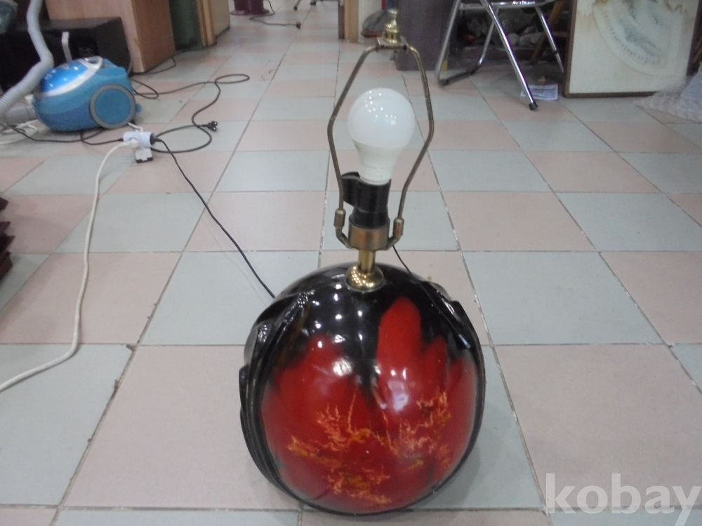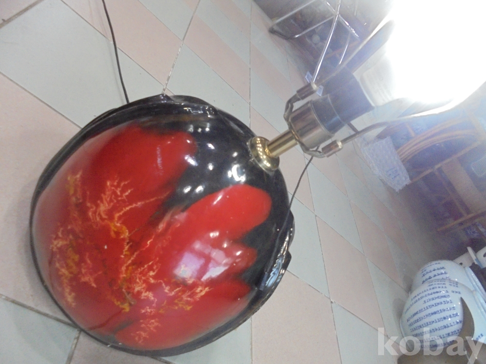 여러번의 굽는과정을거처 만들기어려운 화려한 도자기바탕위에 크고 작은전구다마에 당기는 스위치로 전기 잘오는 둥근 화려한 도자기위의