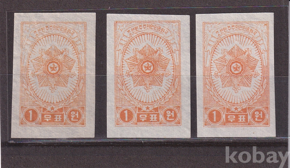[윗동네 미사용 우표 모음展] - 국기 훈장 1원 단편 3장 일괄