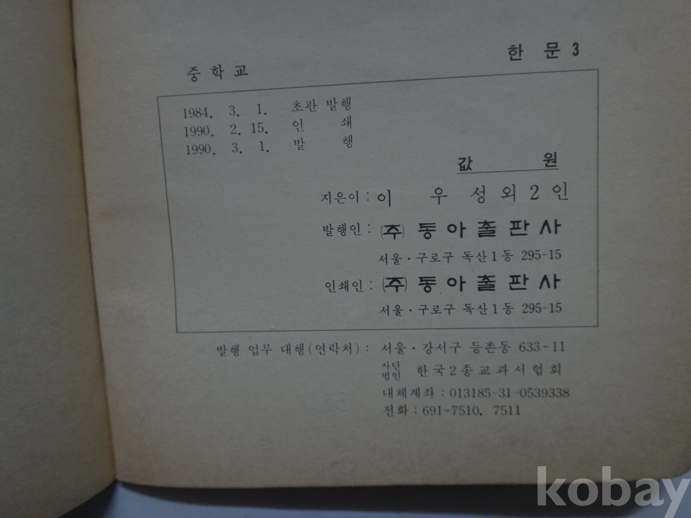 (중학교) 한문 3 (1990년, 이우성 외, 동아출판사)