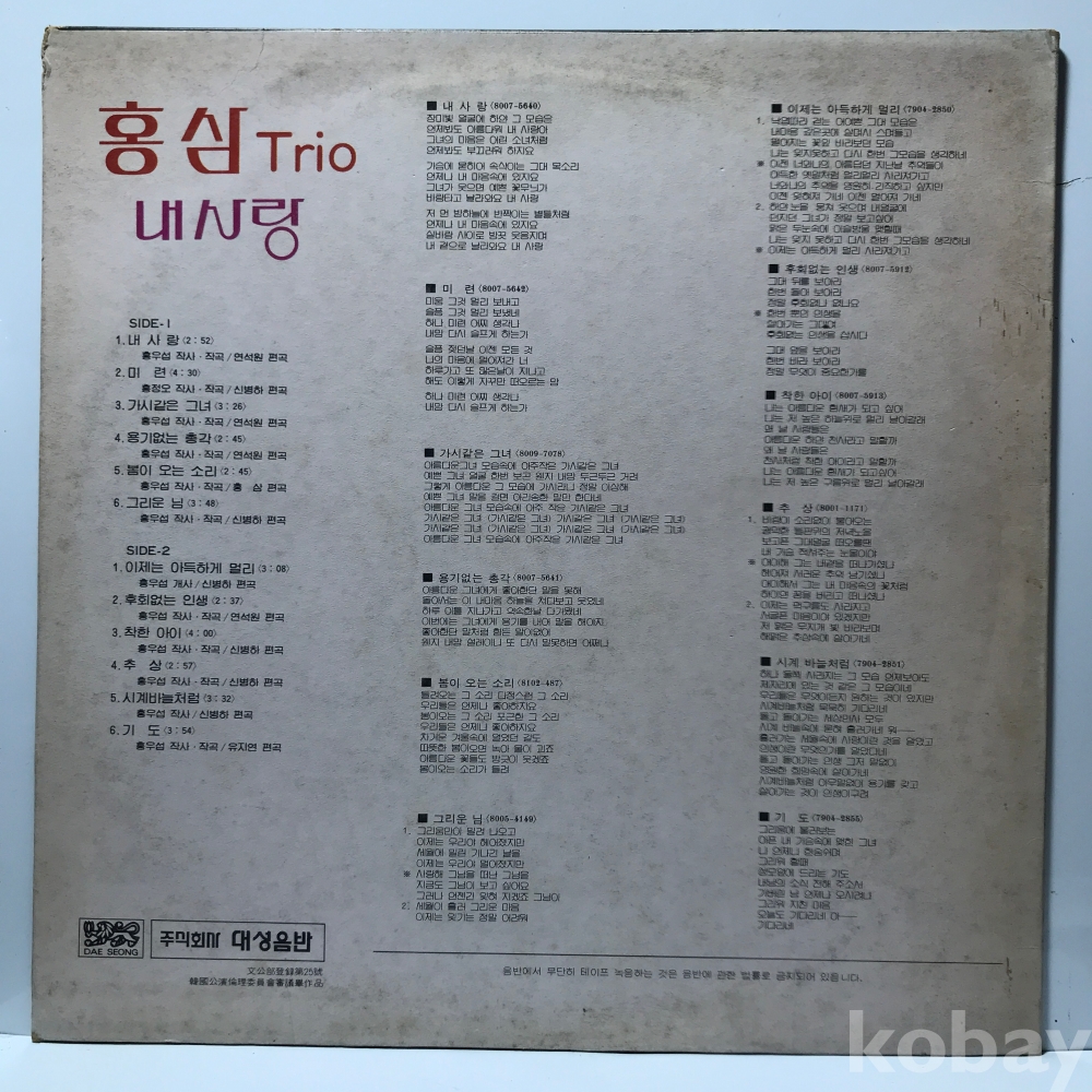 | 자켓상태 | EX : 약간의 마모, 모서리 찢김 존재 | 음반상태 | EX : 재생에 영향 없는 가벼운 기스 존재 | 발매정보 | 알수없음 | 가사지여부 | 무 |
