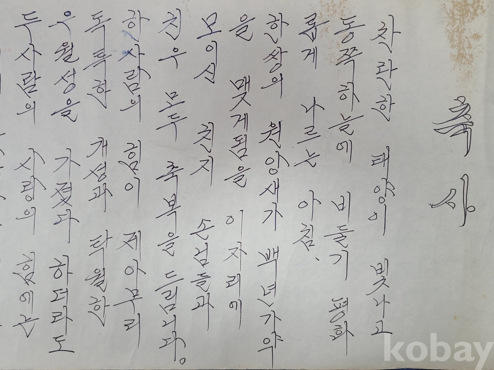 ▶1973년 결혼식 축사(졸업통에 들어있음)/240*32cm