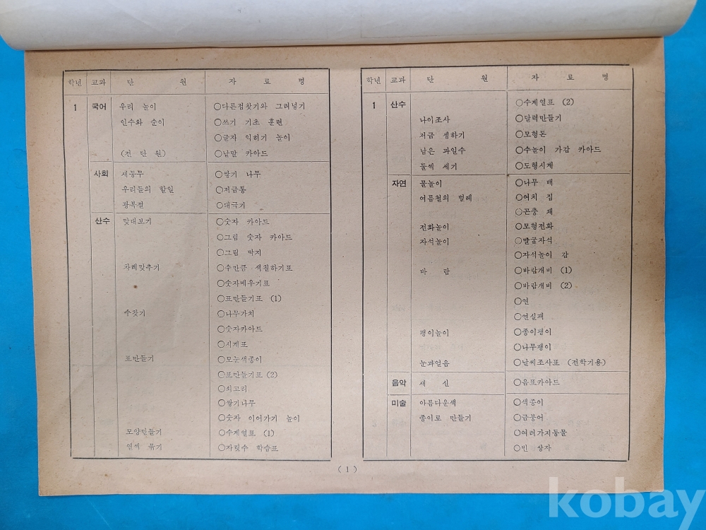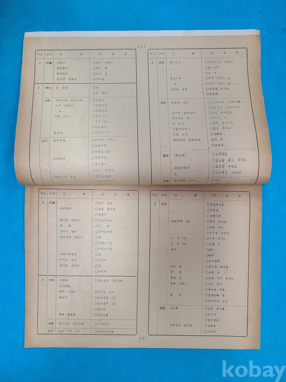 **** 국어,사회,산수,자연,음악,미술 등 교과별로 자료명 내역이 들어있다 앞표지에 사전국민학교 접수인이 찍혀있다