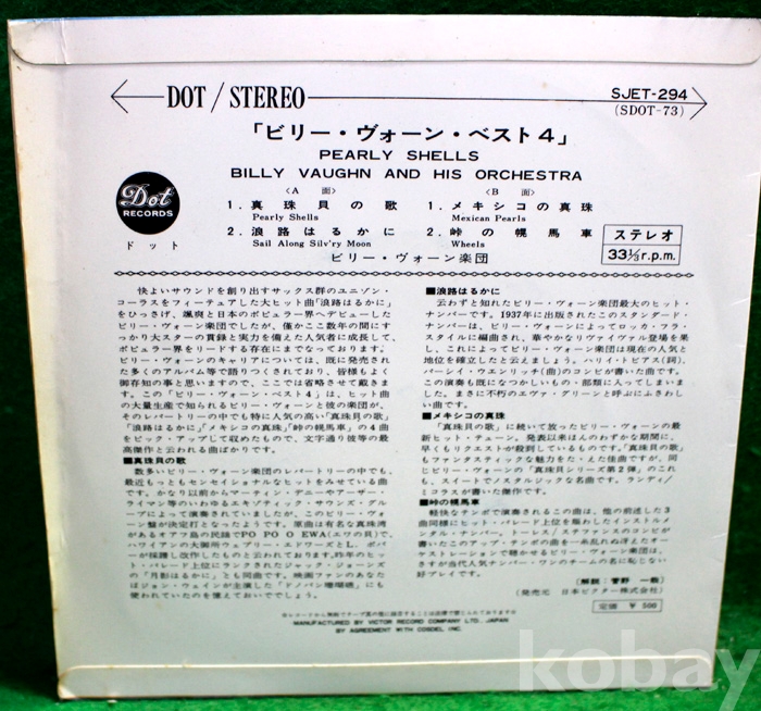 (7인치음반) Billy Vaughn - Pearly shells / Mexican pearls..