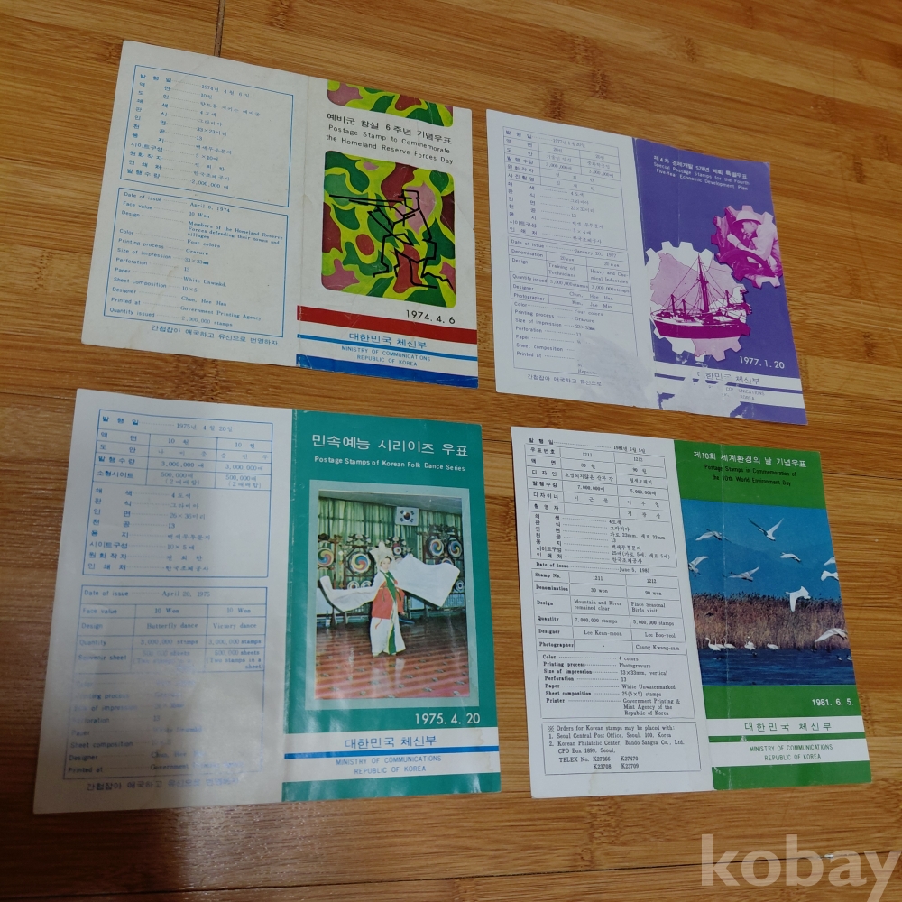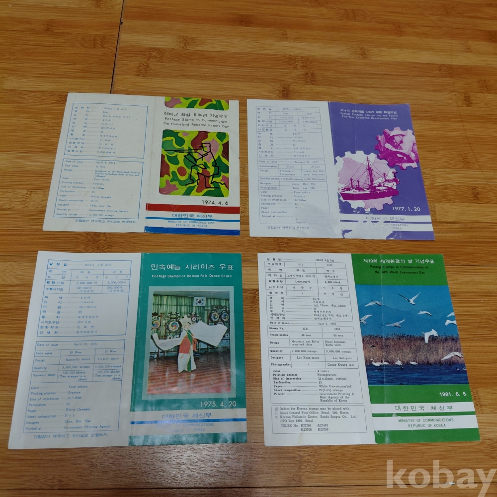 70년대 발행 우표발행 안내 자료서 네점일괄 올려드립니다