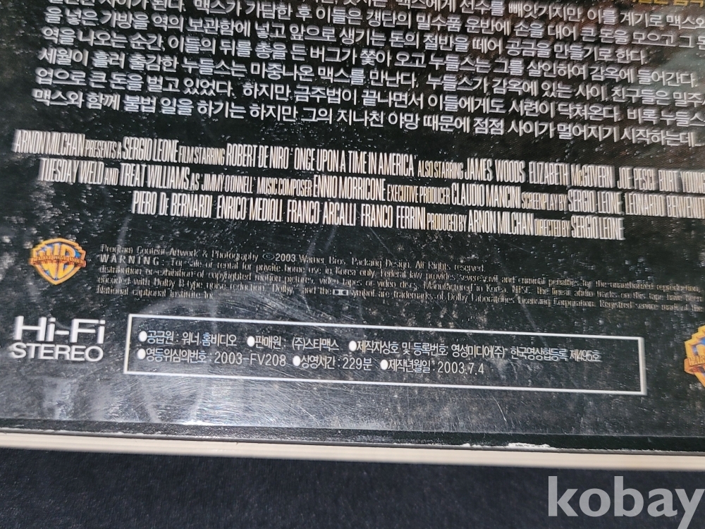 빈티지 영화 비디오테이프 2003년 보물성(2002년작), 2003년 원스 어폰 어 타임 인 아메리카 하편(1984년작) 2종 일괄입니다.