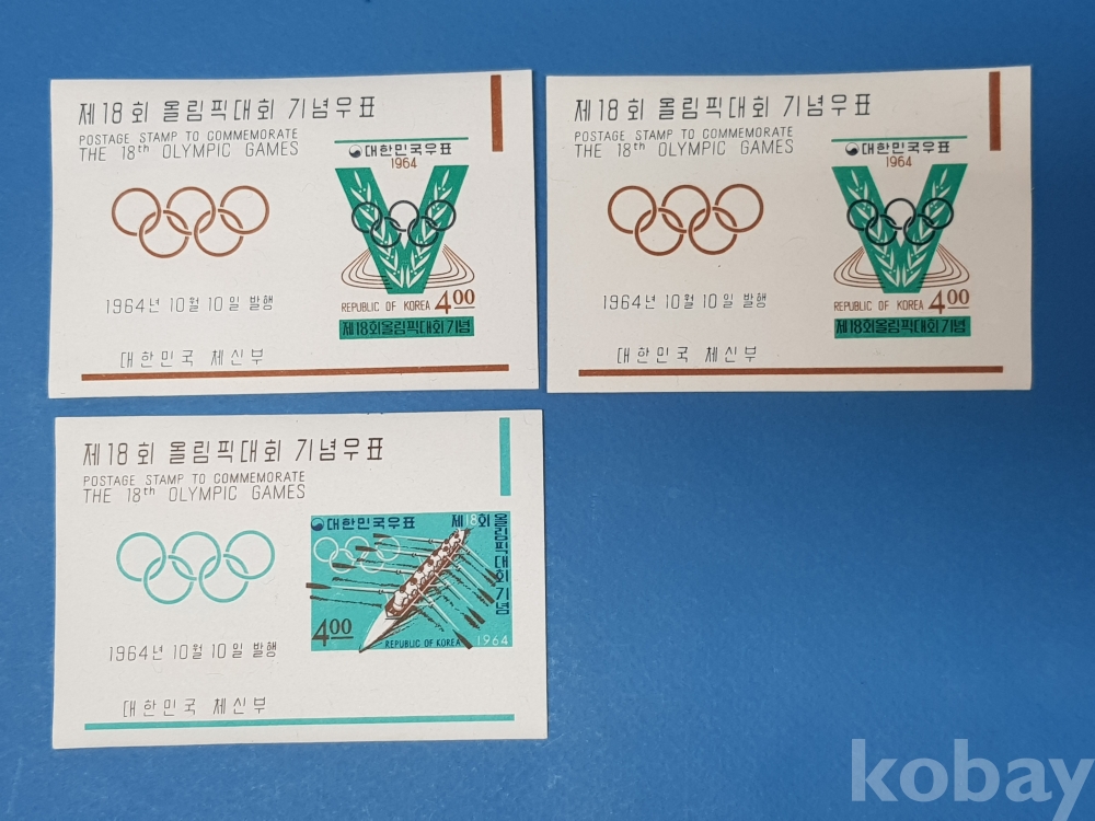 **** 제18회 올림픽대회 기념우표/1964.10.10/대한민국 체신부/3매 일괄